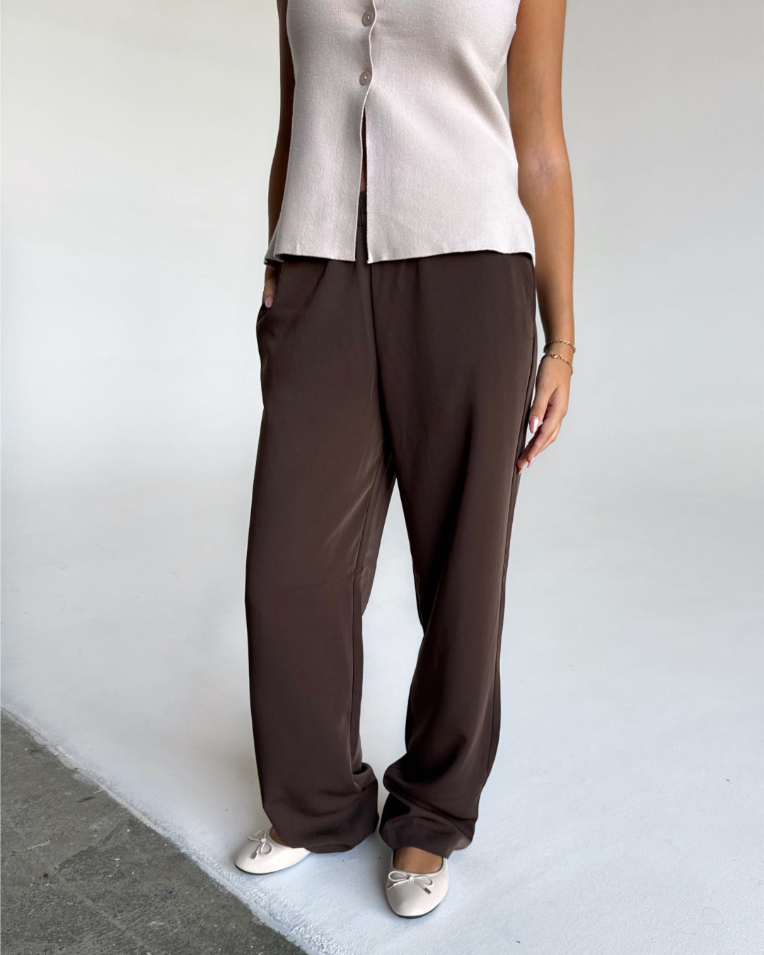 POPPY bukser, brun har to lommer foran og er med elastik i taljen. POPPY bukser, brun har et regular fit, og kan styles efter eget behov.