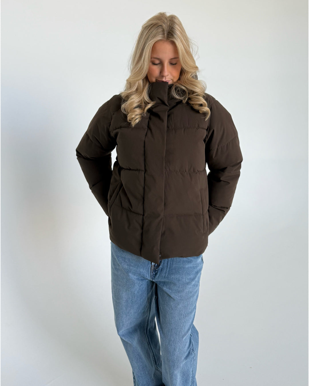 Produktbillede af sort Global puf jakke set forfra. Fra BySofieSønderby