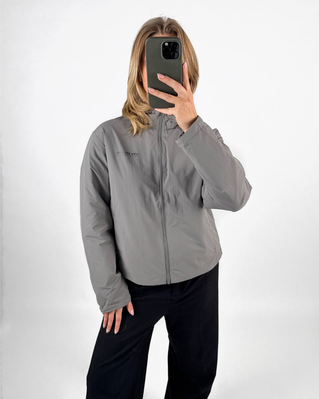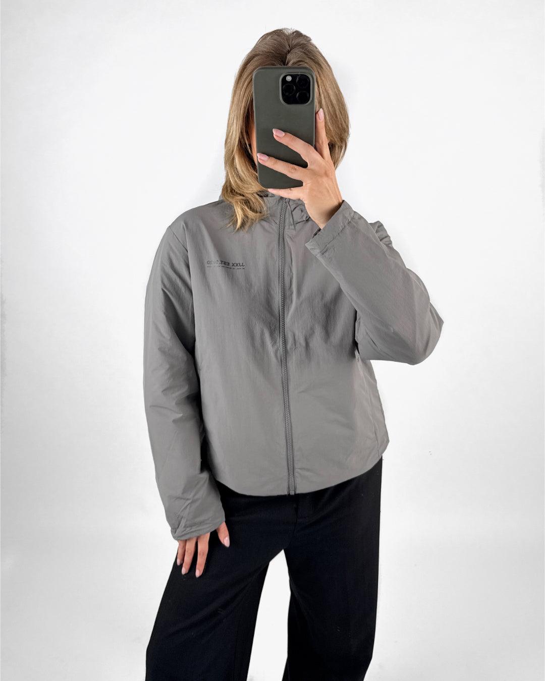 Den cool LEA jakke, grå er den perfekte jakke til en lys forårsdag. Stoffet er tyndt og let og giver en åndbar og behagelig følelse.