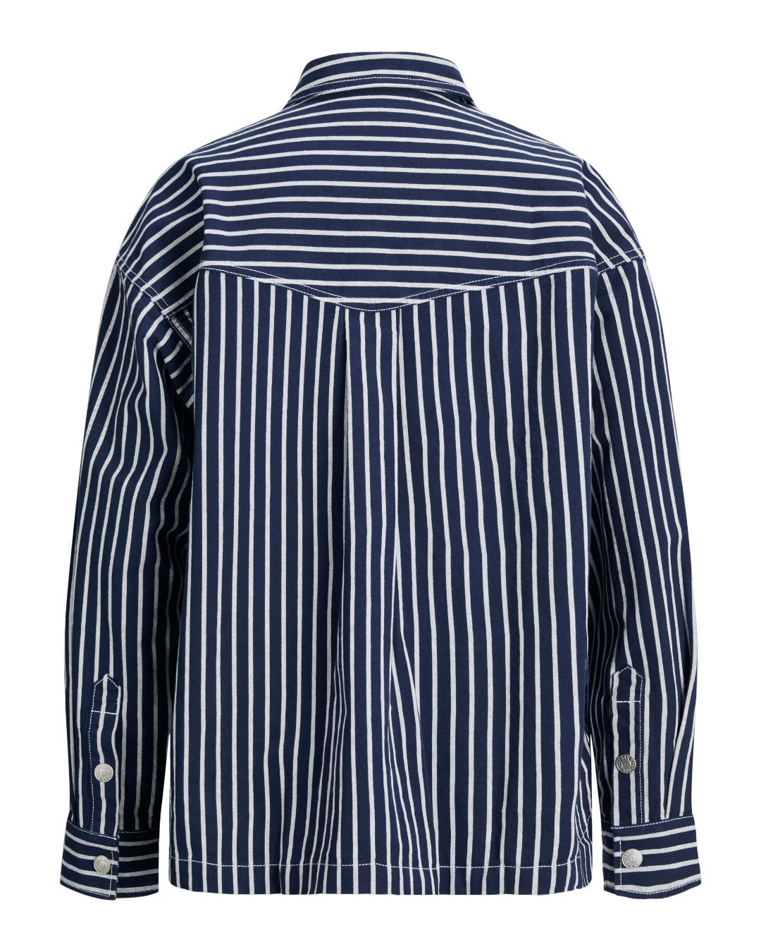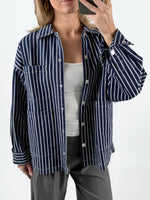 Vores LULA denim jakke, mørkeblå er med hvide striber og i det lækreste slidstærke materiale. LULA denim jakke, mørkeblå er designet med en skjortekrave, lange ærmer og en tre lommer foran. Jakken kan bådes bruges som en skjorte eller jakke.