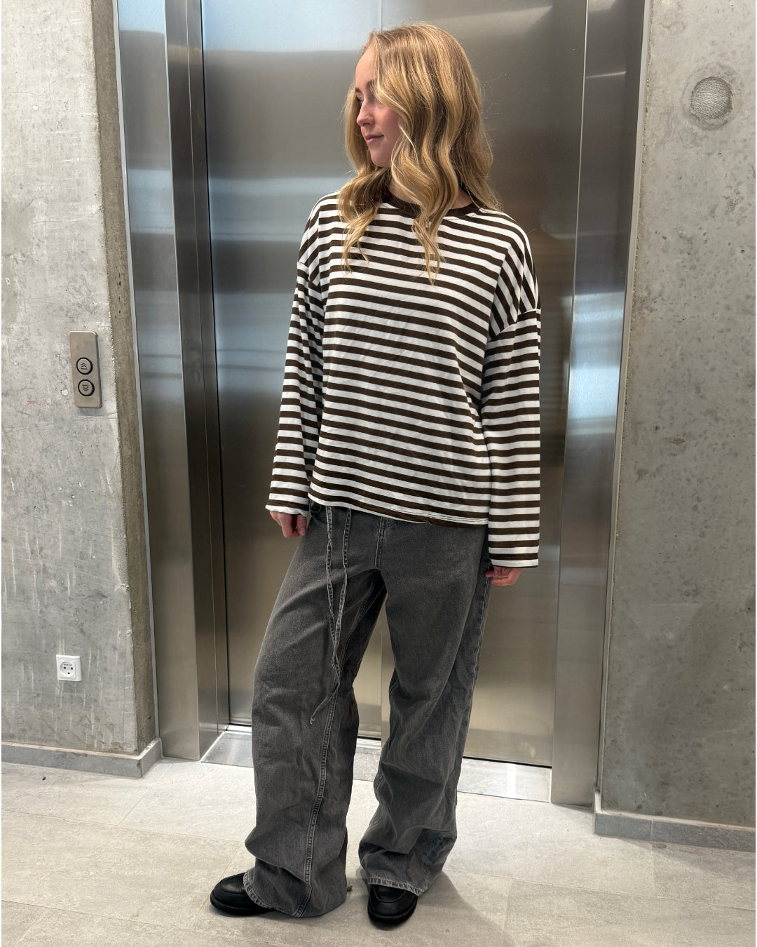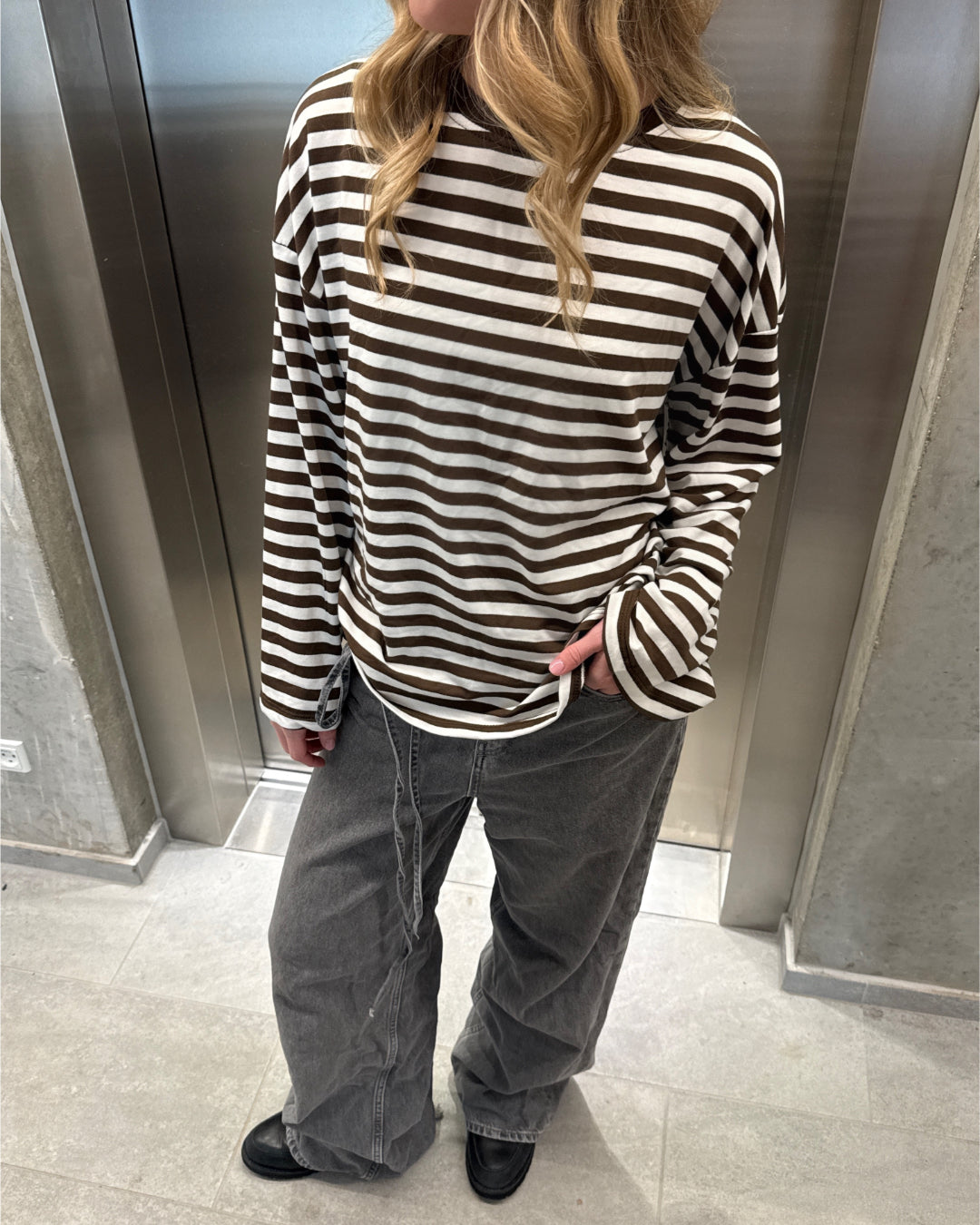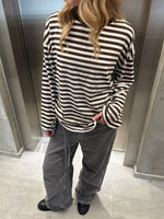 Den fede boxy PENNY stribet long sleeve, hvid/brun er den perfekte stribede langærmede trøje til garderoben. Trøjen er i et blødt bomuldsstof, hvilket gør at den sidder så cool.