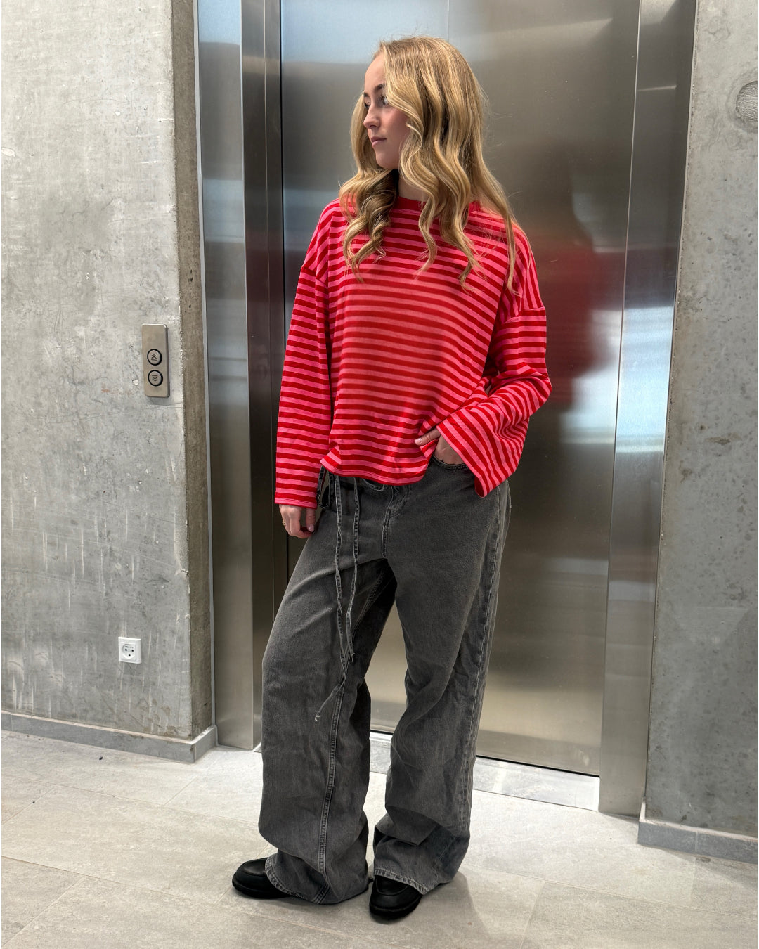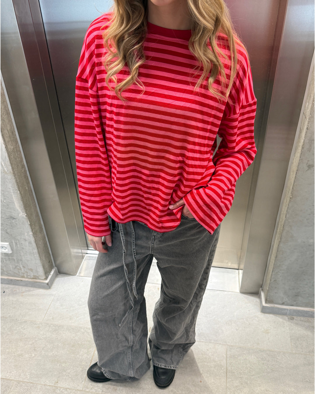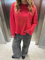 Den fede boxy PENNY stribet long sleeve, rød/pink er den perfekte stribede langærmede trøje til garderoben. Trøjen er i et blødt bomuldsstof, hvilket gør at den sidder så cool.