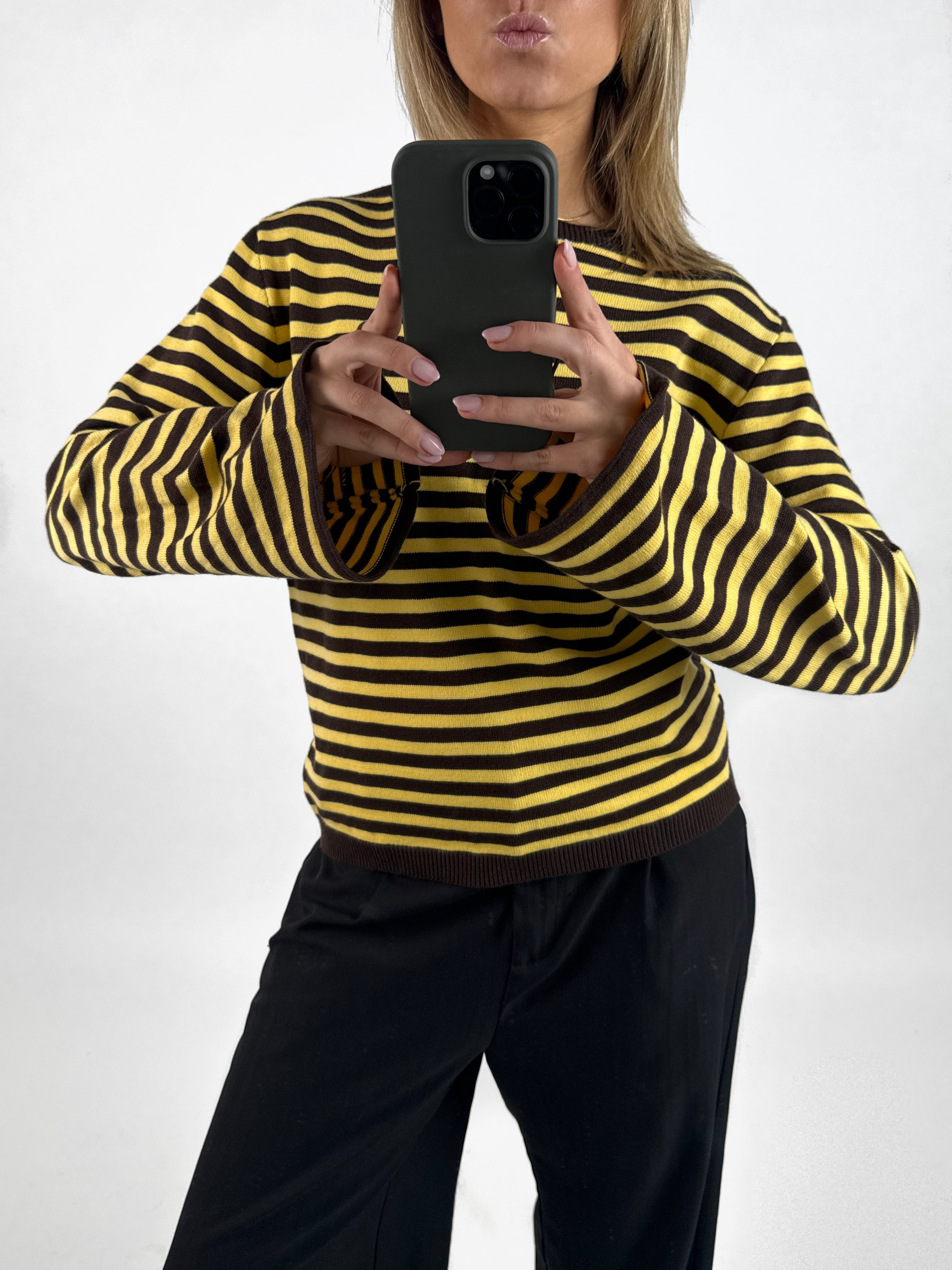 Den fede boxy REBEKKA stribet long sleeve, gul/brun er den perfekte stribede langærmede trøje til garderoben. Trøjen er i et blødt tætstrikket materiale, hvilket gør at den sidder så cool.