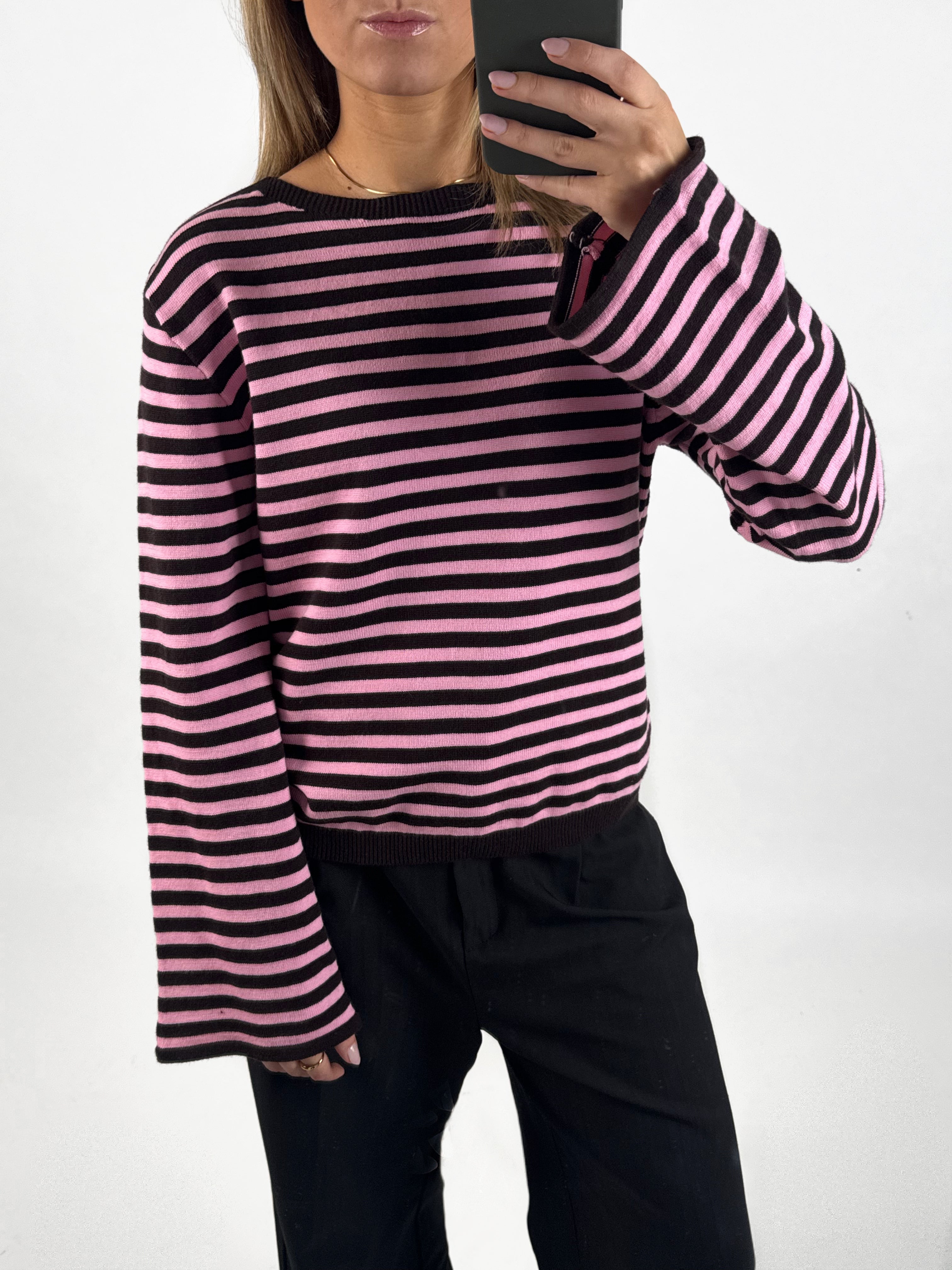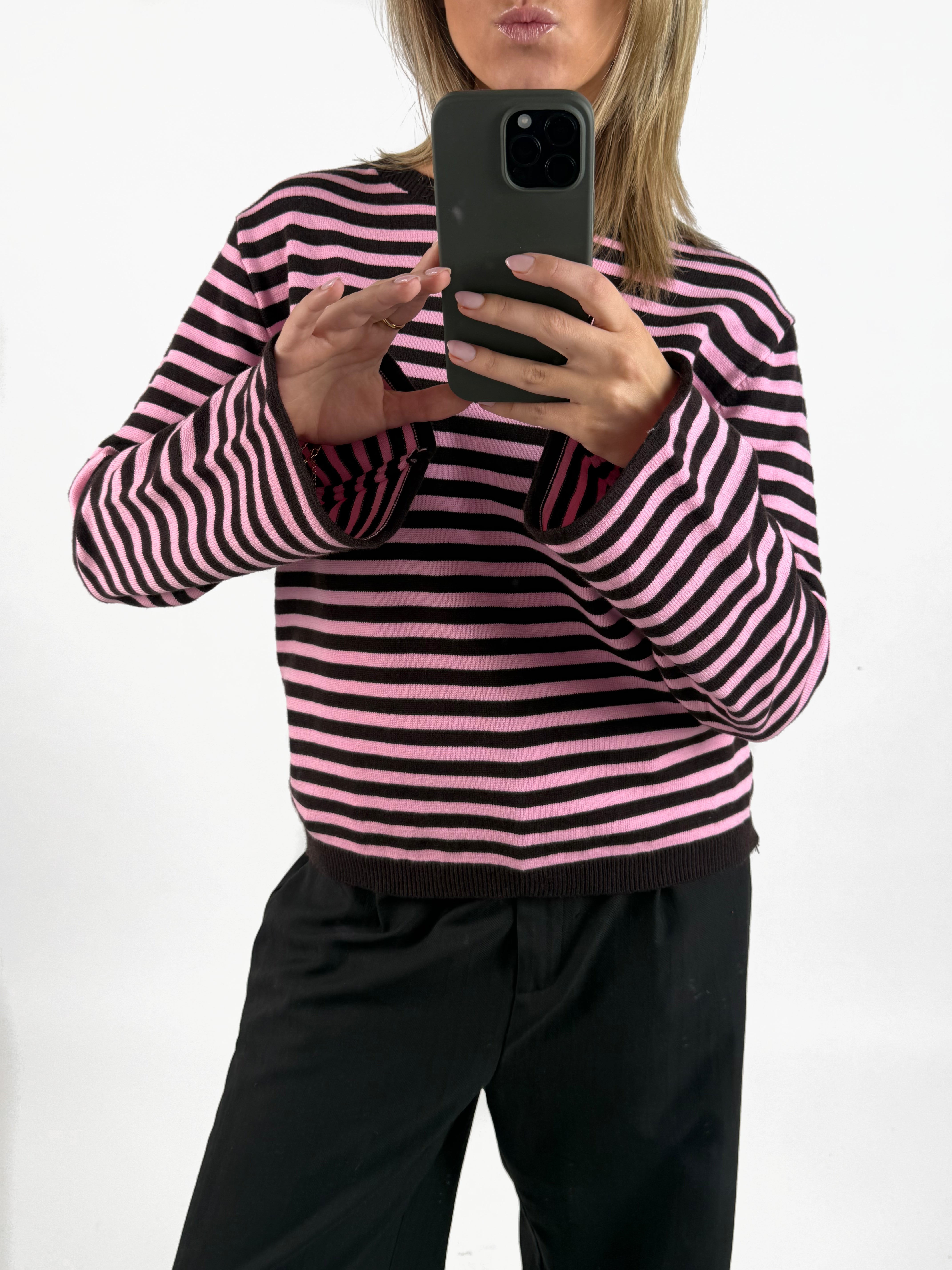Den fede boxy REBEKKA stribet long sleeve, lyserød/brun er den perfekte stribede langærmede trøje til garderoben. Trøjen er i et blødt tæt strikket materiale, hvilket gør at den sidder så cool.