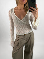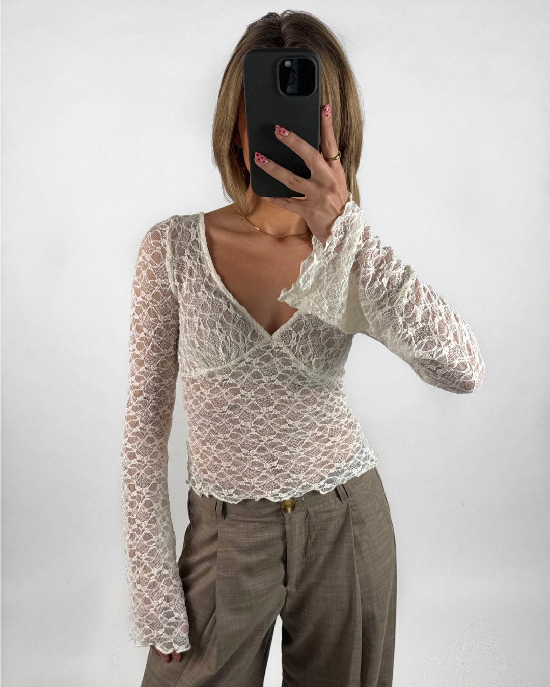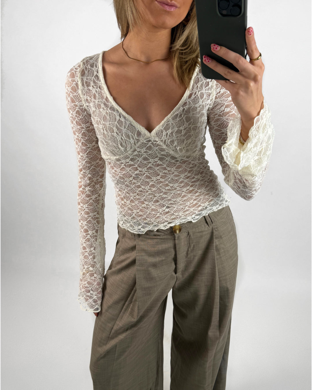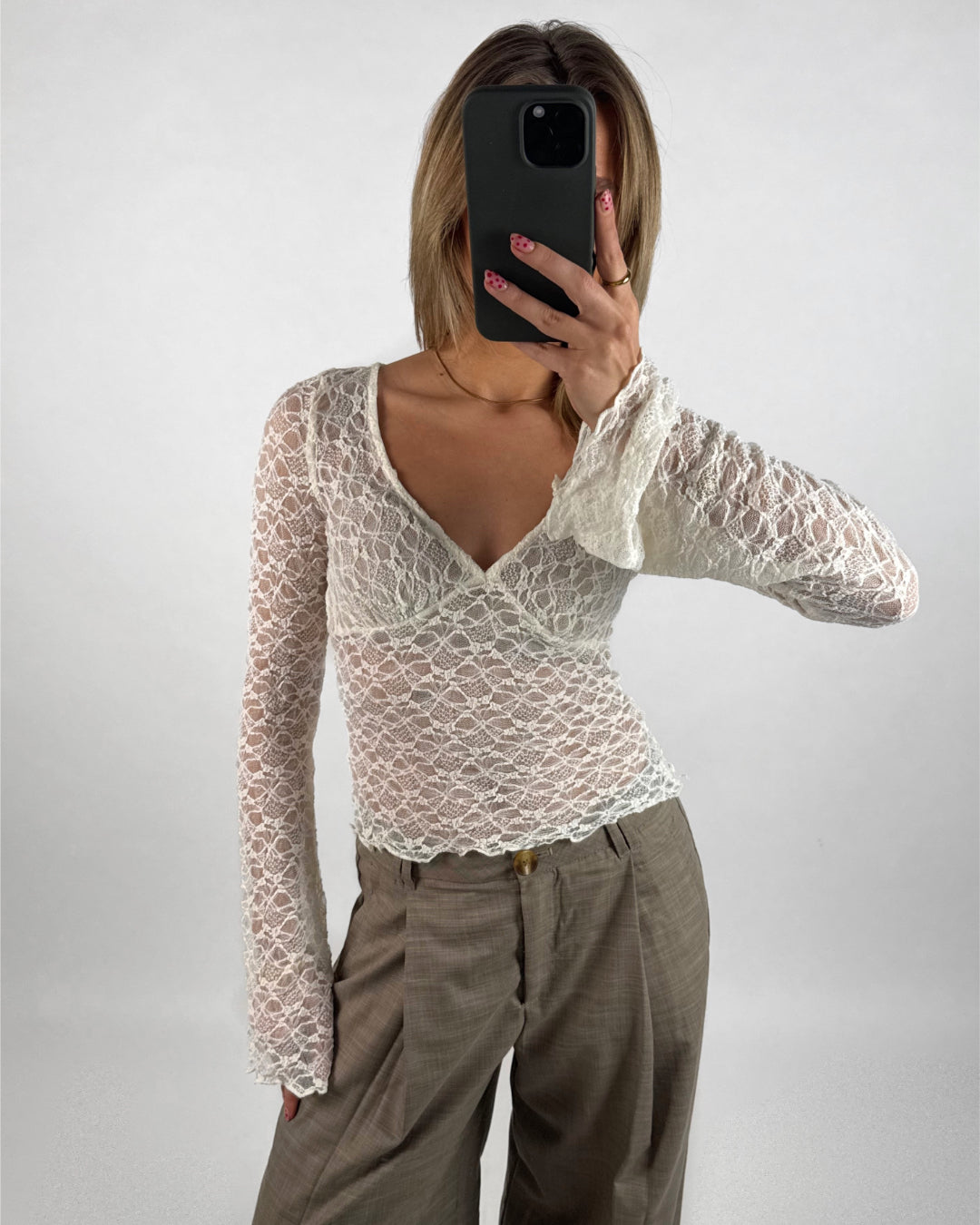 Denne søde SAFIRA blonde bluse, creme er en fin og elegant blonde overdel, med vide ærmer, som gør den endnu mere feminin.