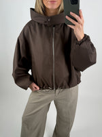 Denne stilfulde CARMEN jakke, brun kombinerer komfort, funktionalitet og moderne design. Jakken har en rummelig, oversized pasform med en høj, justérbar krave, der både beskytter mod vind og tilføjer et cool statement til dit outfit. Den lukkes med lynlås foran og har trykknapper i kraven, så du kan justere efter behov.