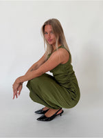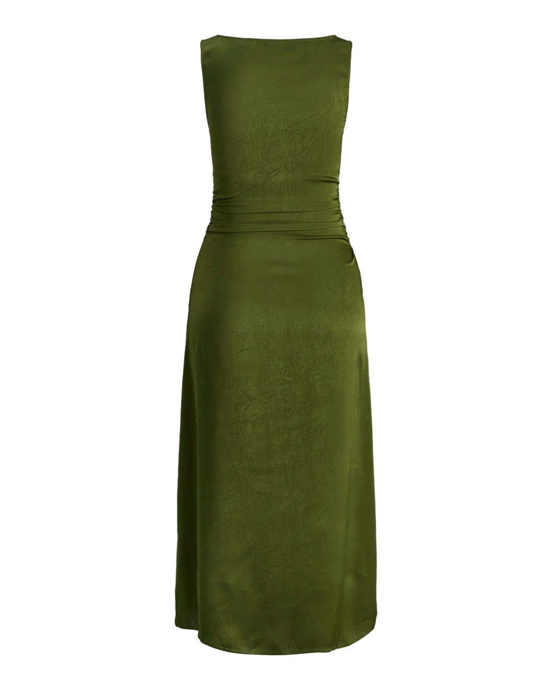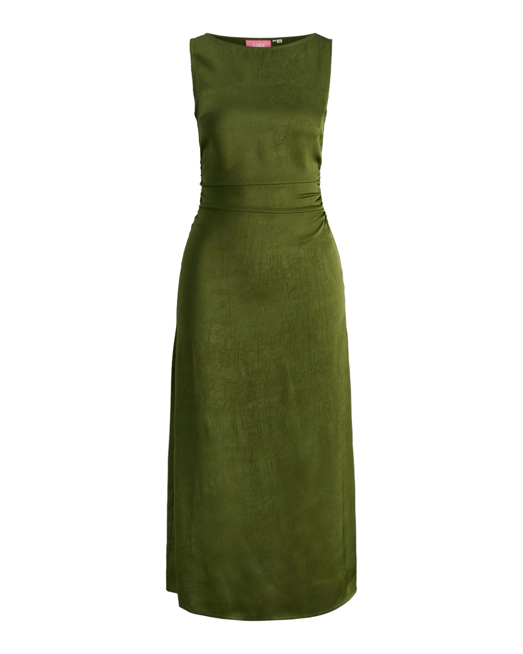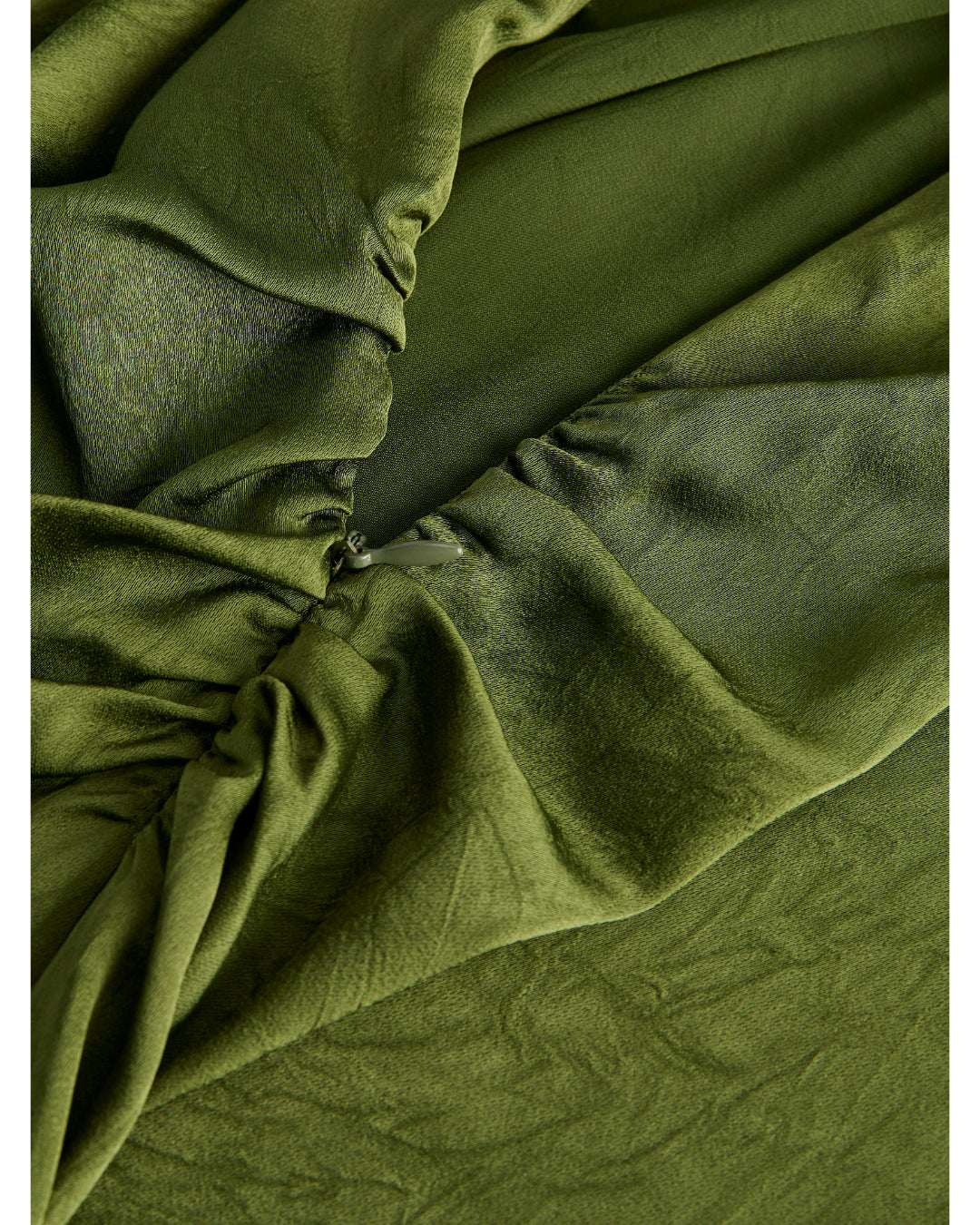 JANE kjole, grøn er lavet i det flotteste satin lignende materiale og har de fineste detaljer. Kjolen har en lukket ryg med skjult lynlås i den ene side.