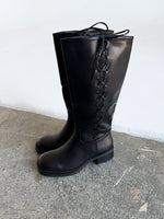 De lækre KIMBER støvler, sort er en høj støvle. De har en fed detalje med snører på siden af støvlen, hvilket giver et lækkert og anderledes look.