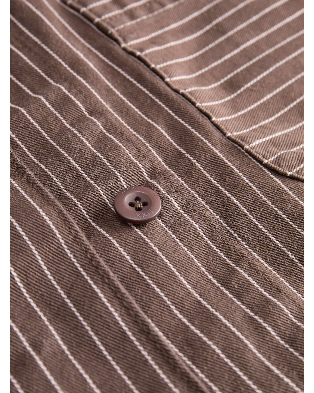 Vores MADDY jakke, brun/lyserød er med lyserød stribe og i det lækreste slidstærke materiale. MADDY jakke, brun/lyserød er designet med en skjortekrave, lange ærmer og en enkelt brystlomme på siden. Jakken kan bådes bruges som en skjorte eller jakke.