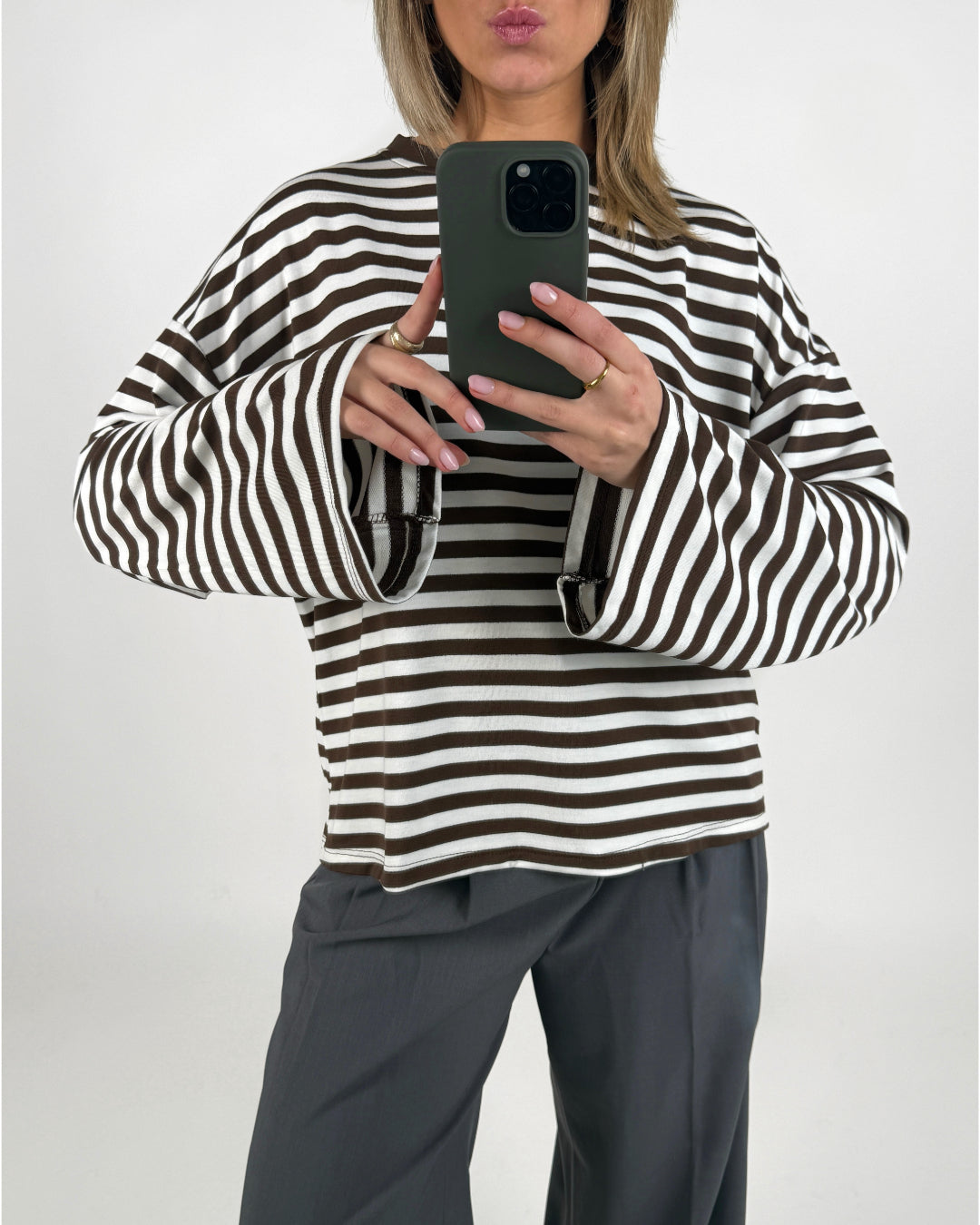 PENNY stribet long sleeve, hvid/brun