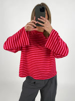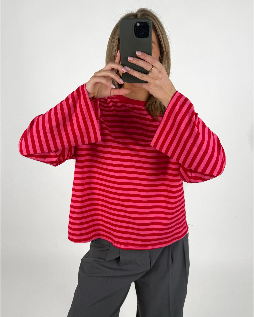 Den fede boxy PENNY stribet long sleeve, rød/pink er den perfekte stribede langærmede trøje til garderoben. Trøjen er i et blødt bomuldsstof, hvilket gør at den sidder så cool.