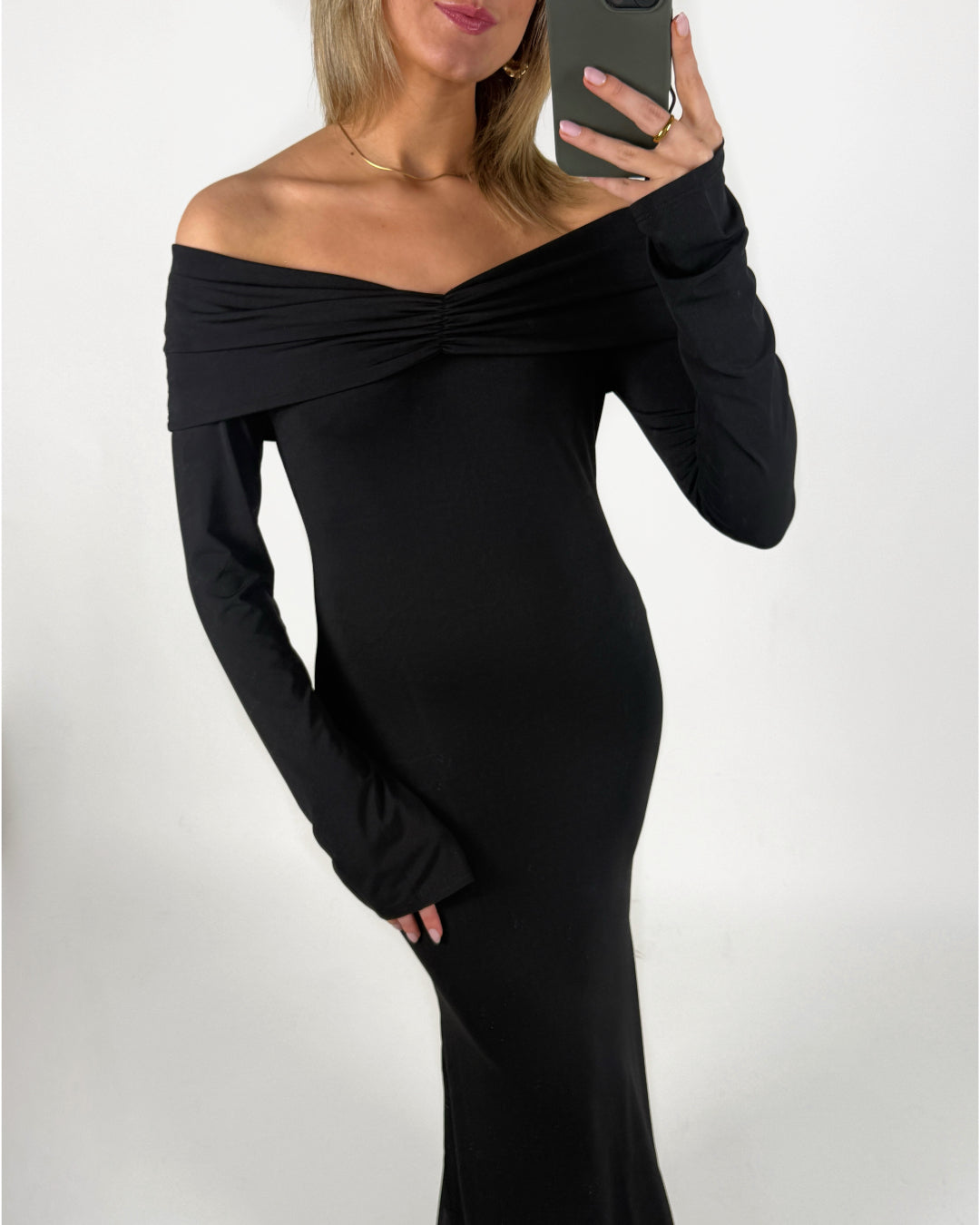 – Off shoulder kjole.