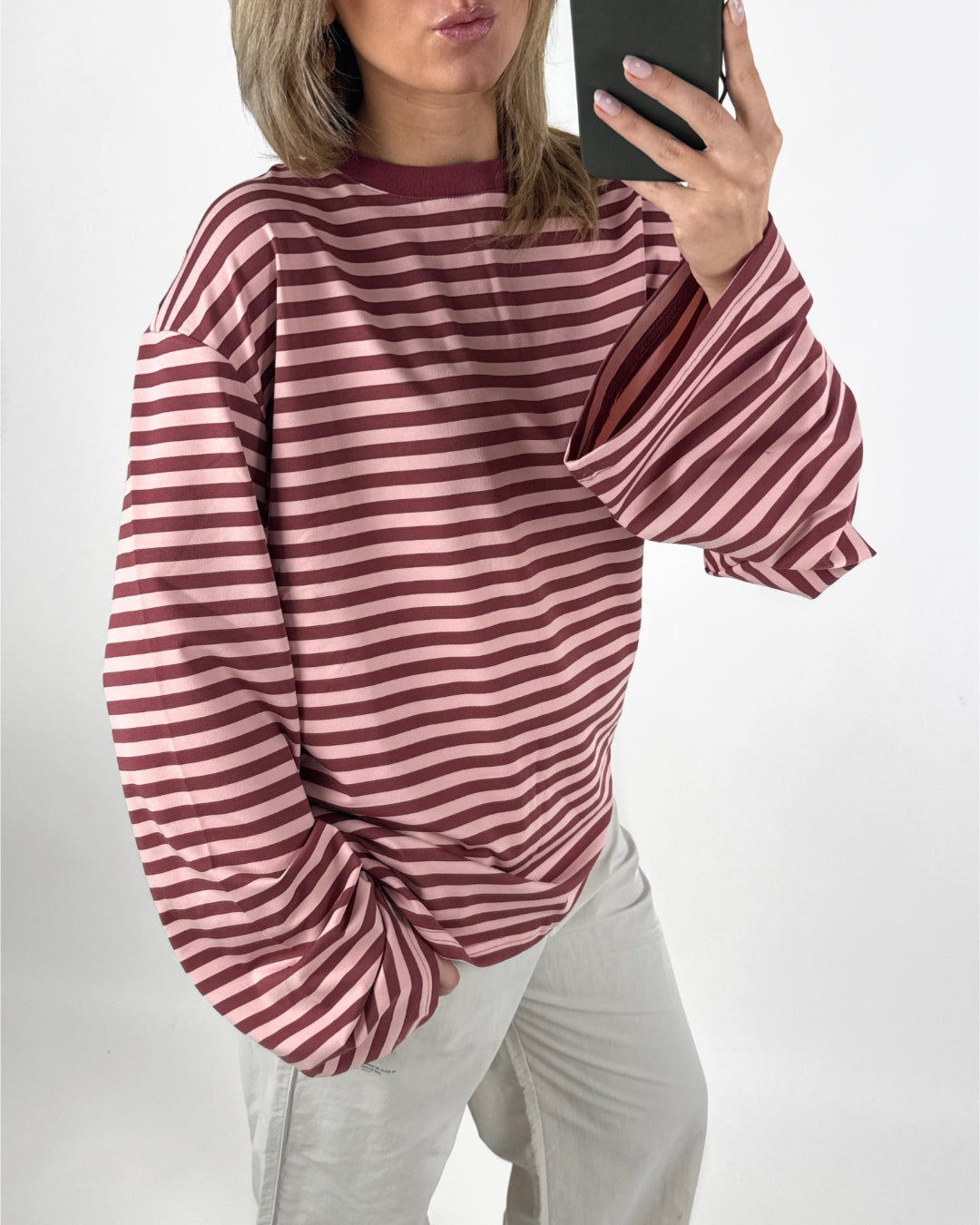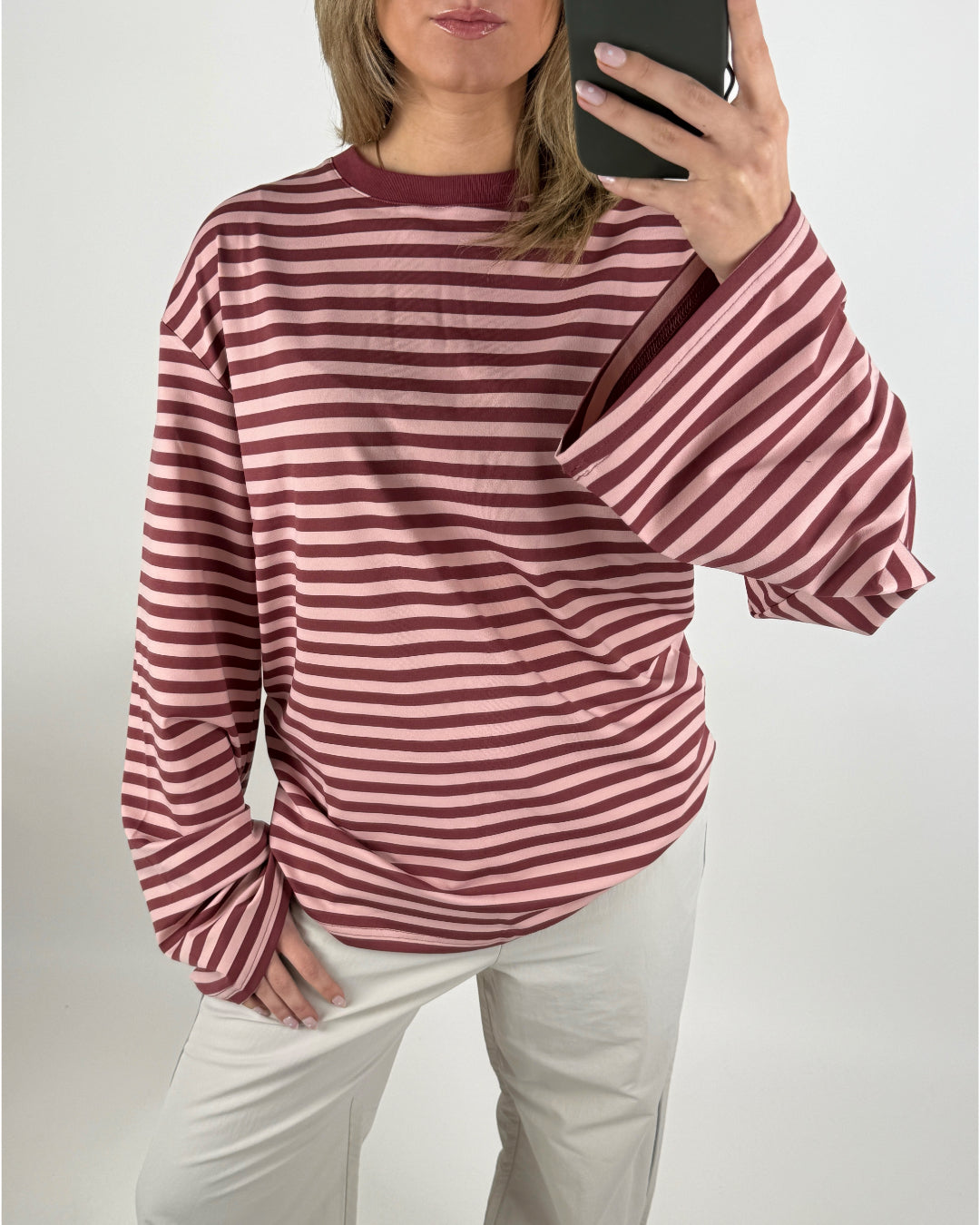BIANCA oversized stribet long sleeve, bordeaux/lyserød