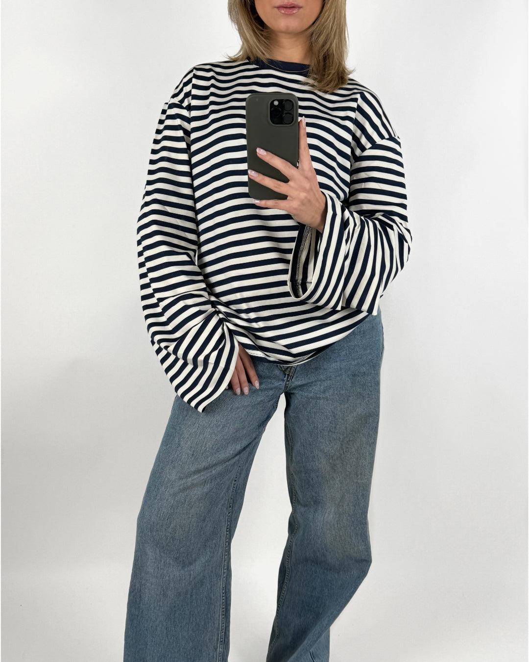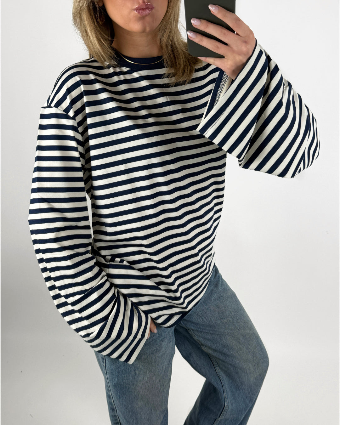 BIANCA oversized stribet long sleeve, navy/hvid