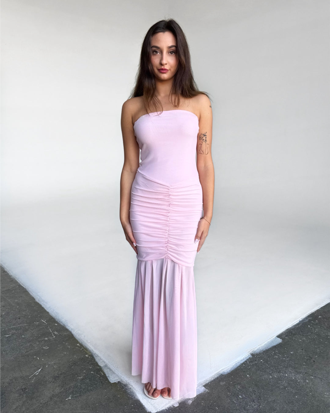 Vores EMELIA kjole, lyserød er en smuk maxi kjole, i et utrolig feminint look.