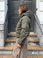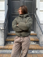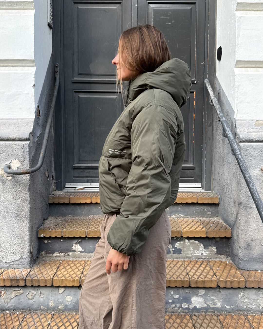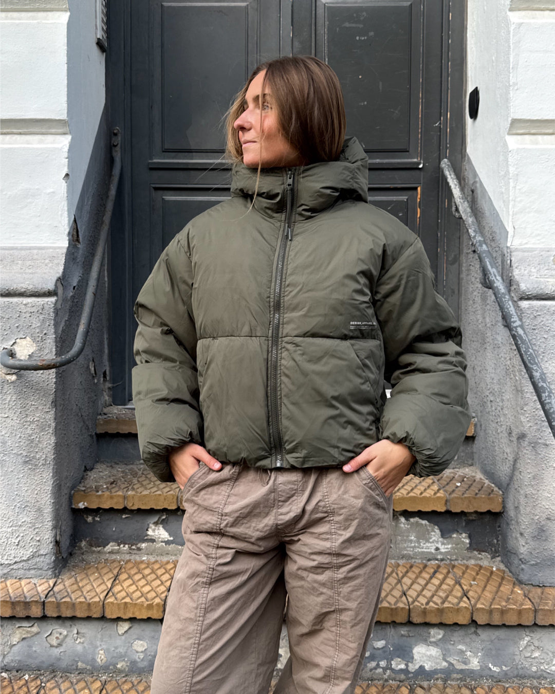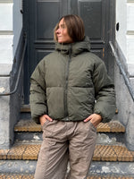 Den fede korte LOLLY puffer jakke, kaki er igen i år perfekt til efterårs- og vintermånederne, da det er en tyk dyne / puffer jakke. Jakken har et mat look og lukkes med lynlås. Jakkens lommer lukkes med knapper og i hætten er der snore til justering