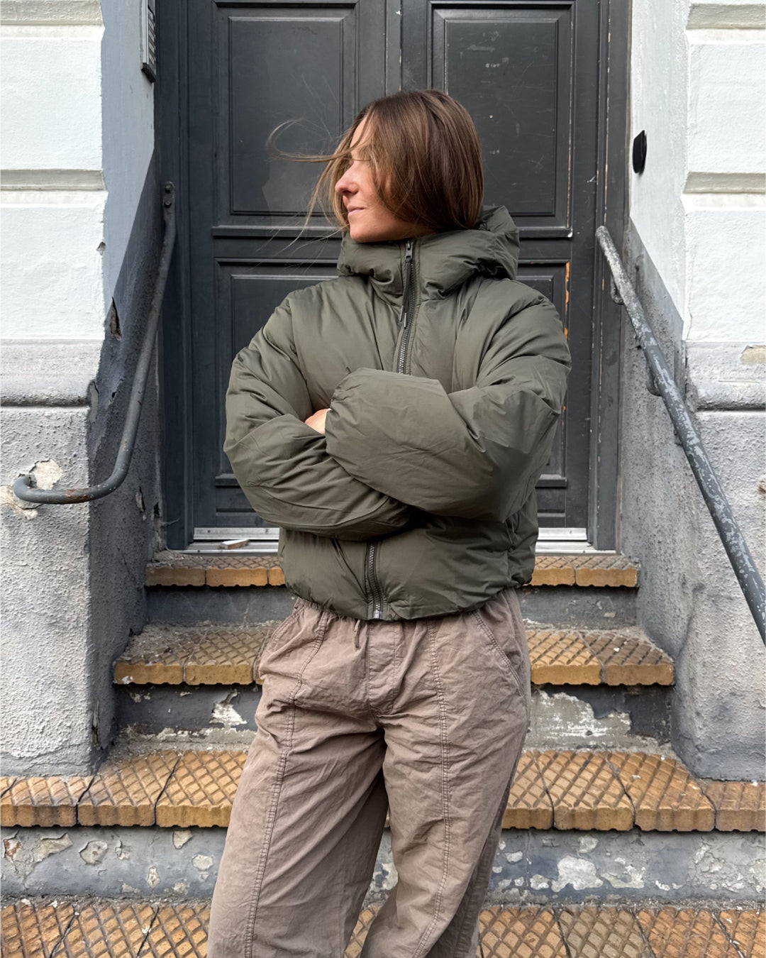 LOLLY puffer jakke, kaki er et musthave i garderoben. Den fede jakke er normal i størrelsen, men kan evt. købes i en størrelse større end normalt for et oversized look.