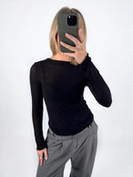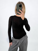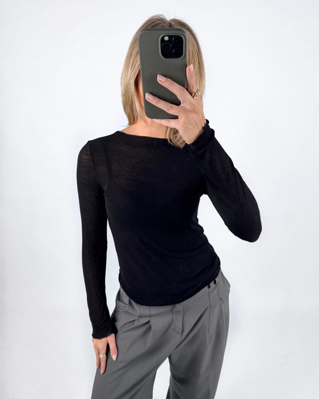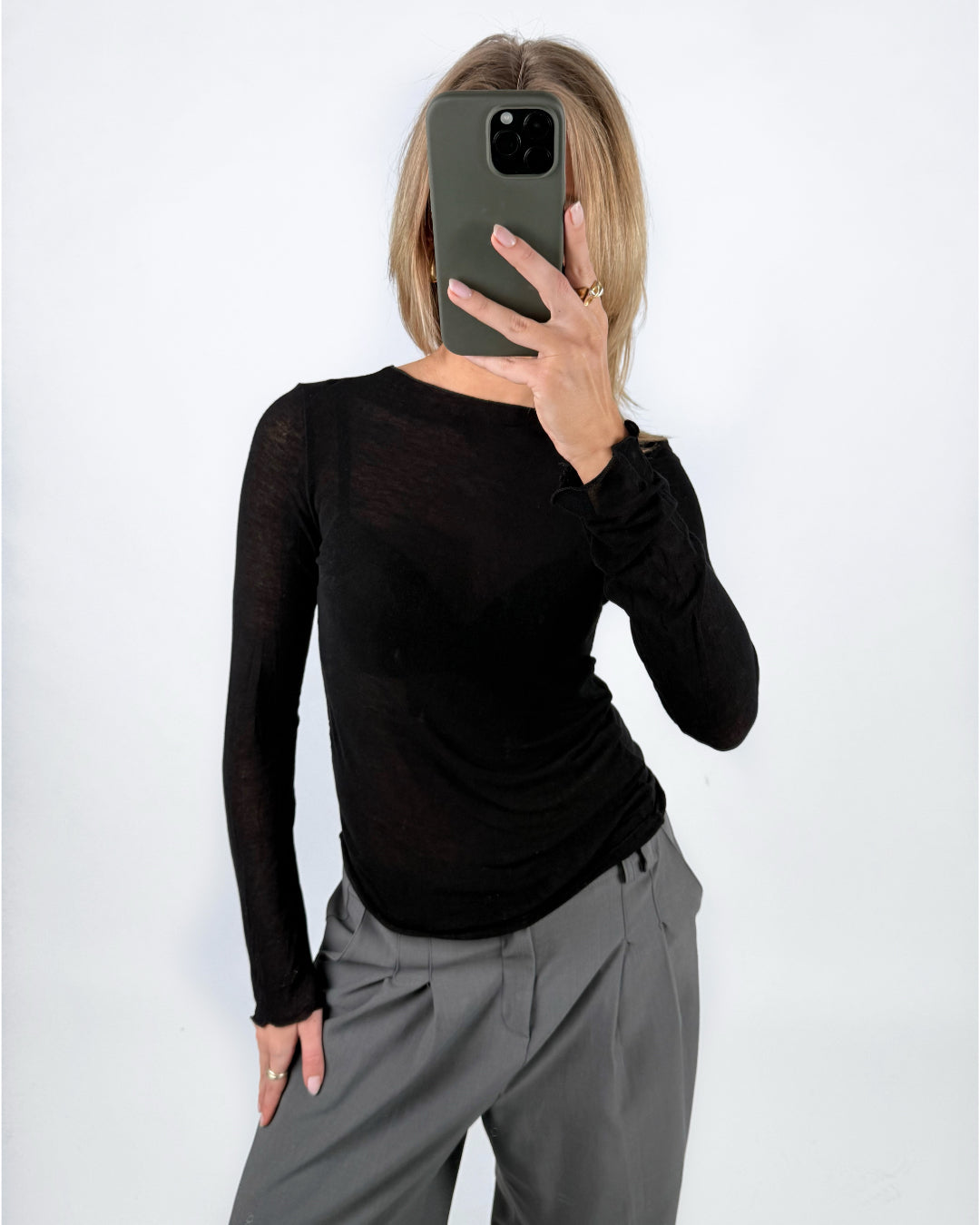 NANCY bluse, sort er en elegant bluse, i et tyndere materiale. Det giver et virkeligt fint look, som er lidt gennemsigtigt. Blusen har meget simpel afslutning ved både ærmer, hals og bund.