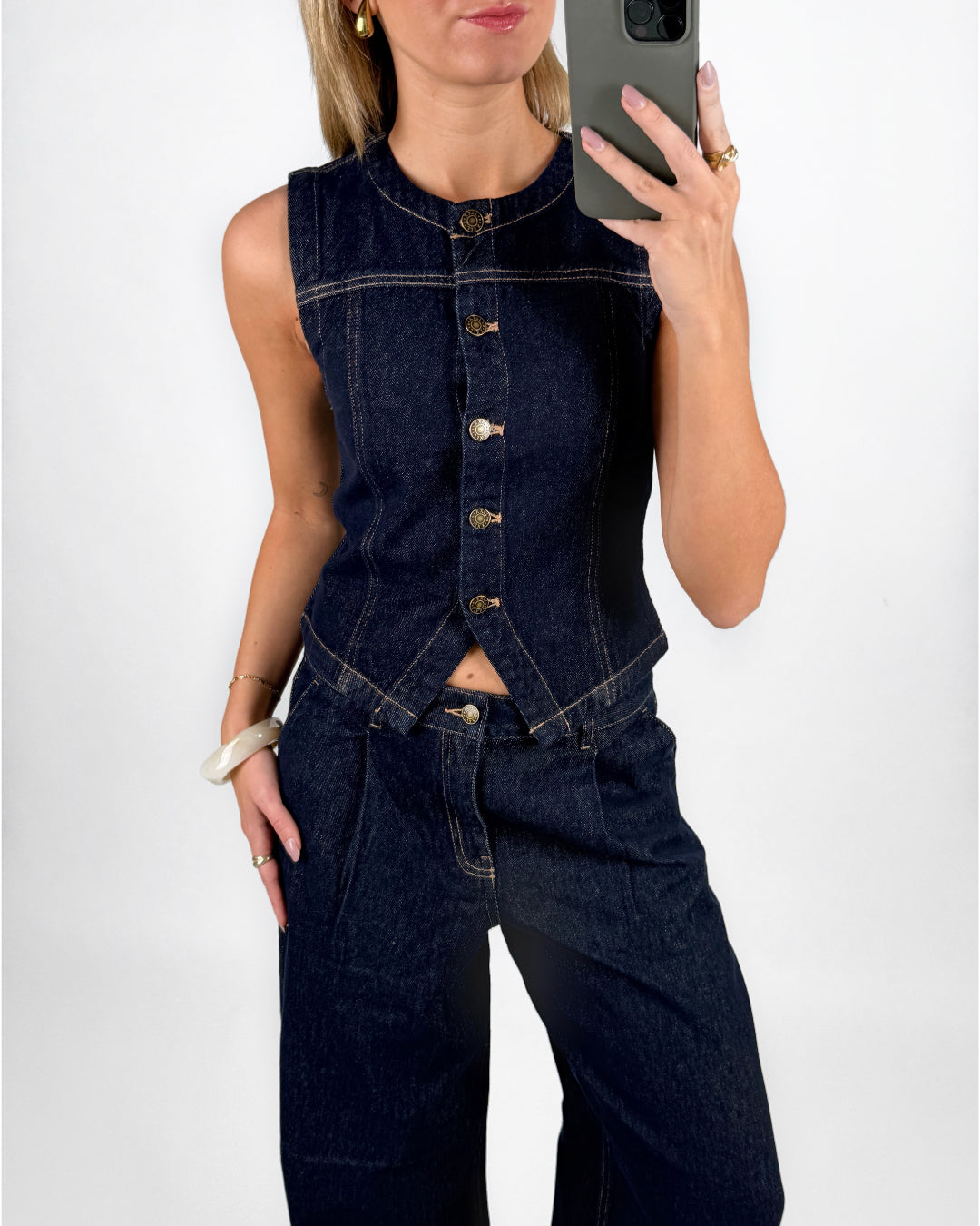 Modelfoto af pige der bærer Lisa bukser i sort, samt sort Lisa vest. Alt fra BySofieSønderby