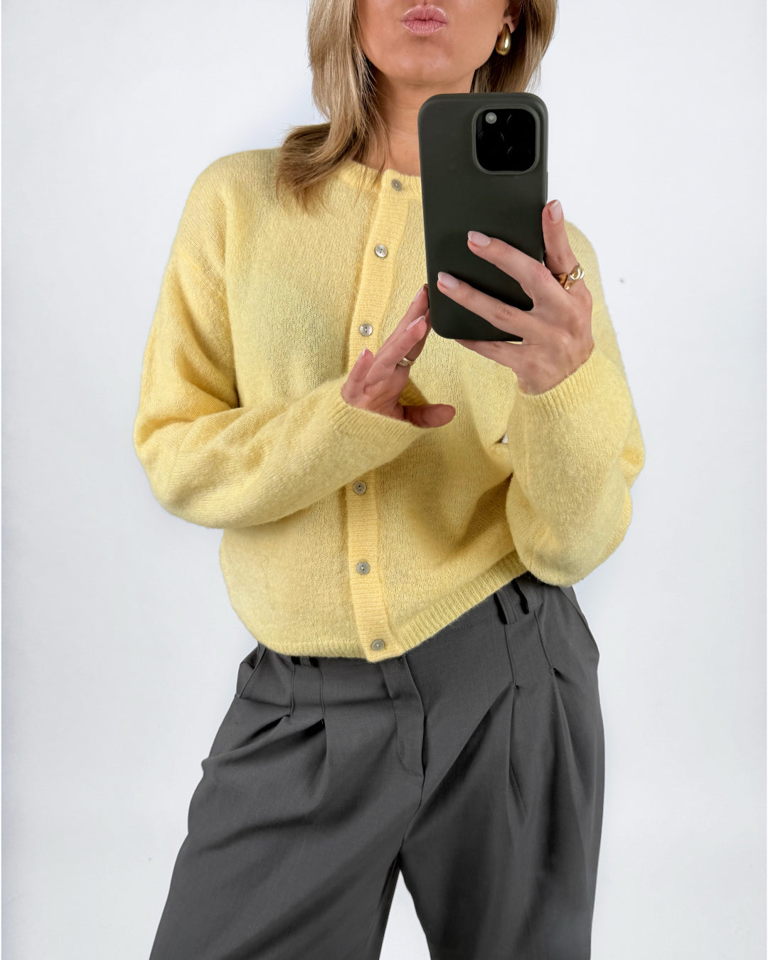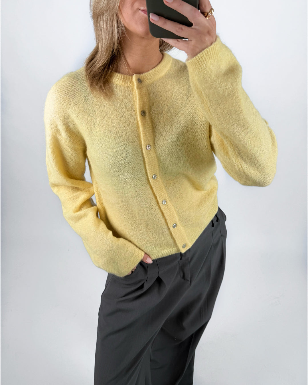 Vores AGATE strik cardigan, gul er perfekt til kølige dage med sit tidløse design og bløde kvalitet. Den findes i flere farver i webshoppen. Farver, som giver fornemmelsen af forår og lysere tider.
