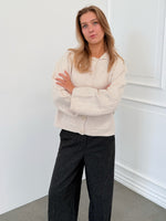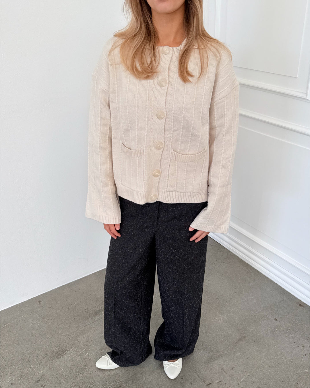 Vores LACEY cardigan, creme er perfekt til kølige dage med sit tidløse design og fine kvalitet. LACEY cardigan, creme er et musthave til enhver garderobe.