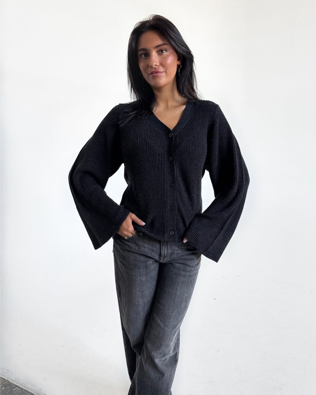 Vores LUCY cardigan, mørkegrå kan bæres året rundt og er velegnet til både hverdag og festlige begivenheder.
