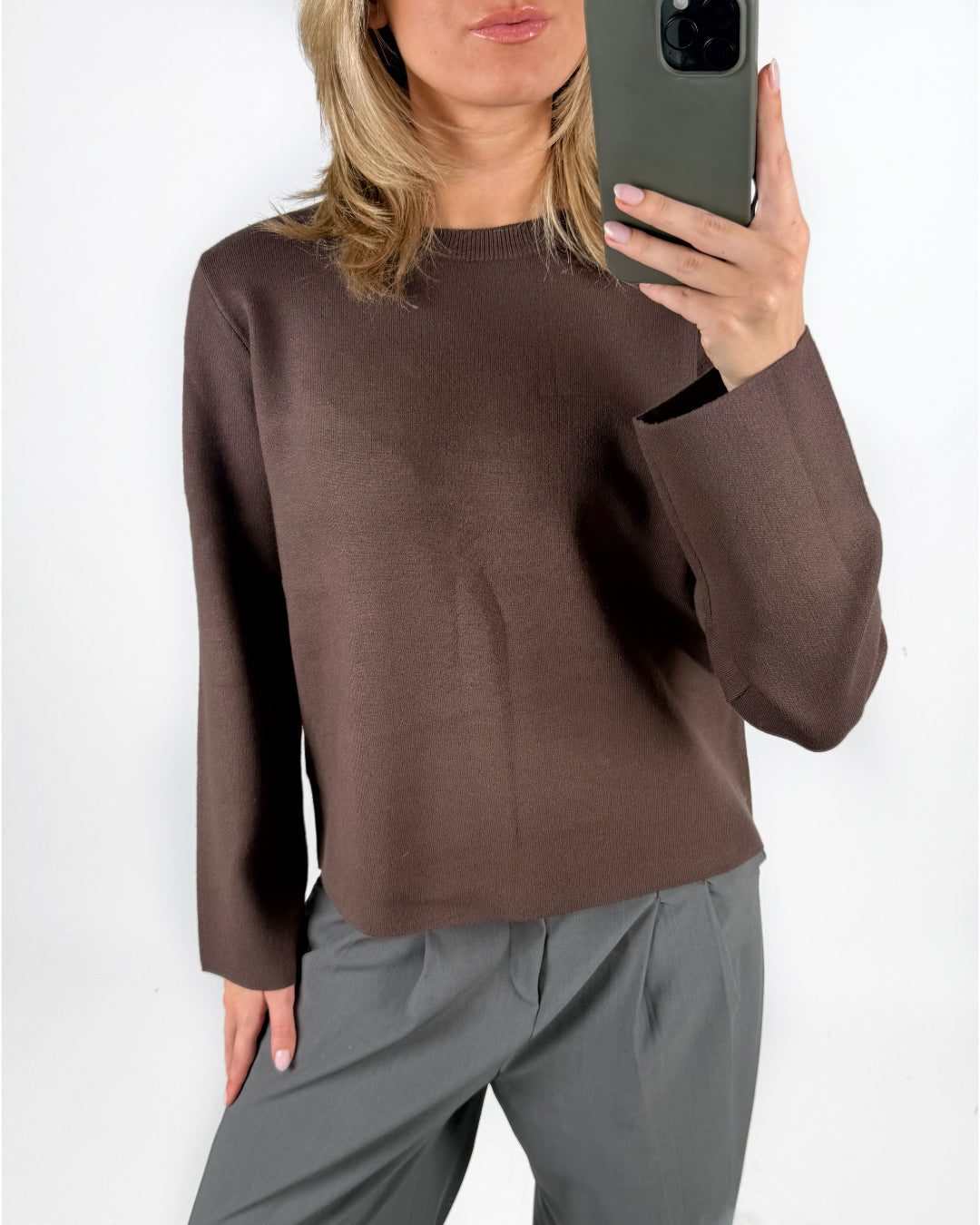 Den flotte REYNARD langærmet strik, brun har lange ærmer, og er i en rigtig lækker kvalitet. Den har rund hals.