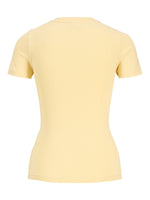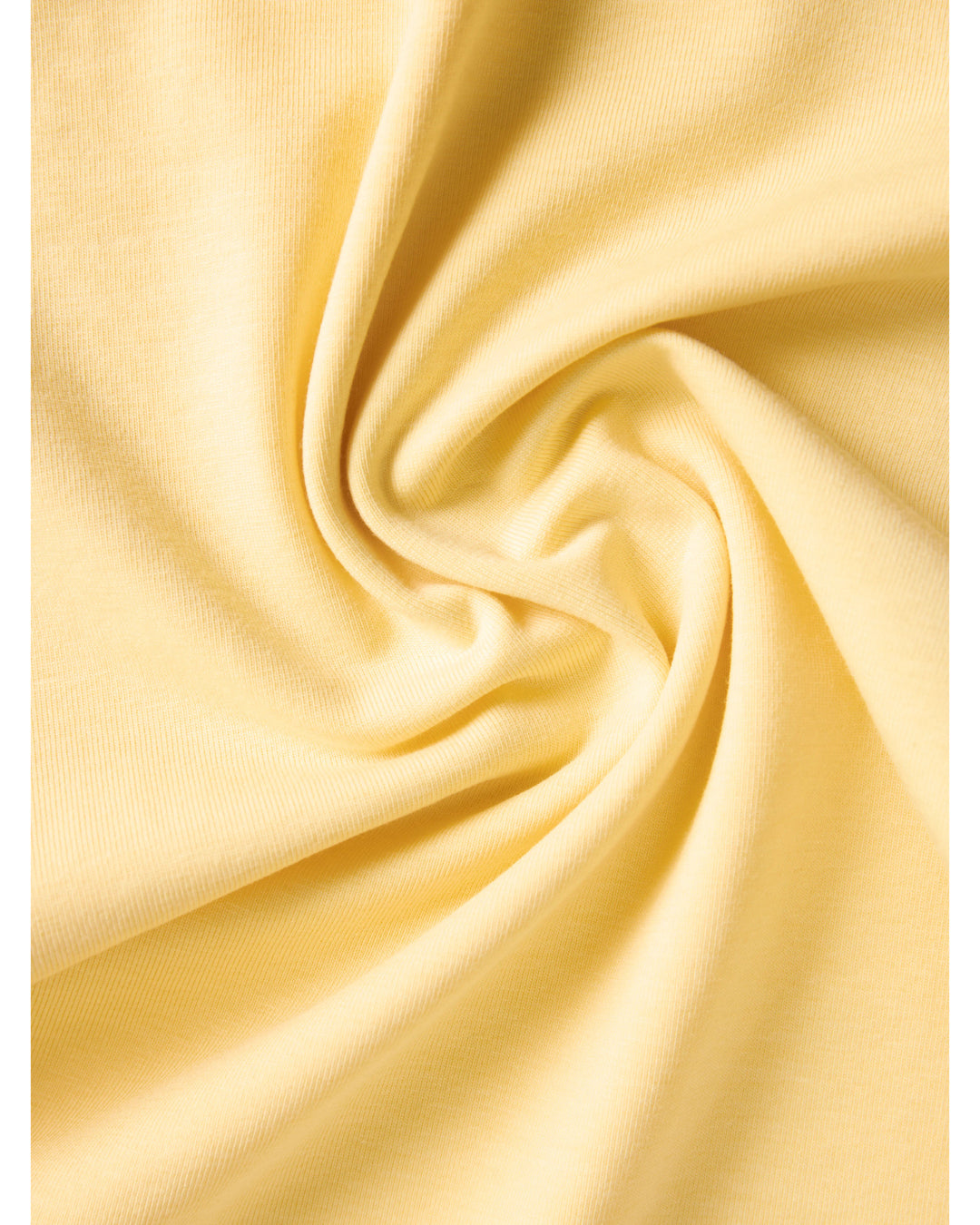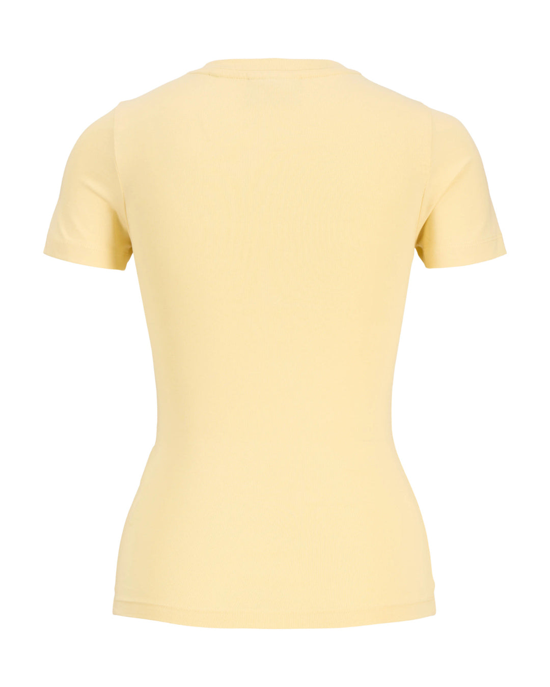 T-shirten fås i tre alsidige farver: hvid, sort og gul. Det enkle udtryk gør den nem at style – brug den alene til et par jeans for et klassisk look, eller under en blazer for et mere elegant outfit.