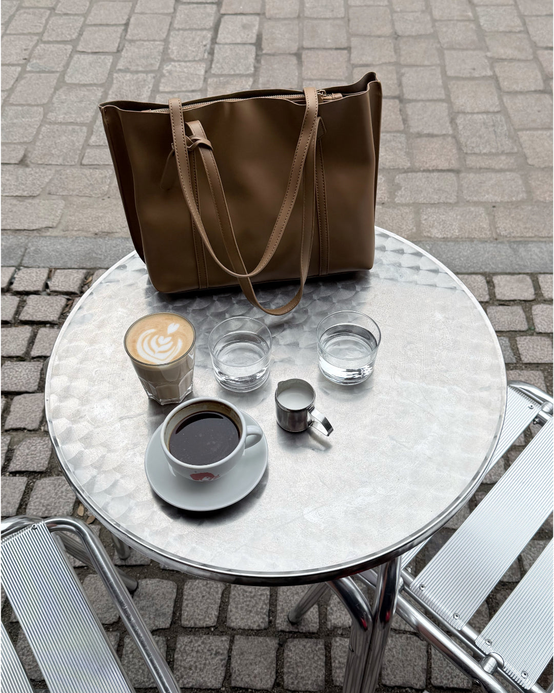 Vores AYLEEN taske, camel er en taske med enkle detaljer. Tasken passer perfekt ind i enhver garderobe og kan bruge til mange forskellige anledninger.