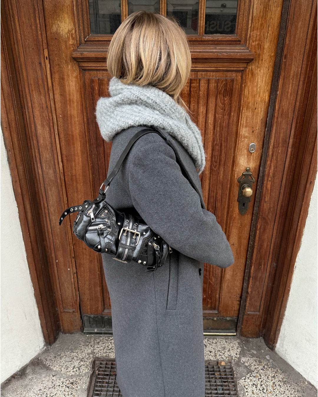 KALLIE taske, sort har den perfekte længde stropper, så man rent faktisk kan have den over skulderen. Tasken har blanke lynlås og nitter.