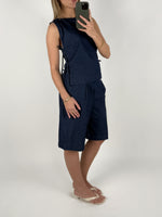 Denne DEBBY top med bindebånd, navy er et stilsikkert valg til din sommergarderobe, hvor komfort og et cool look går hånd i hånd. Toppen er fremstillet i et klassisk mørk bomuldsmateriale, hvilket giver et afslappet og tidløst udtryk. Den har en enkel, lige snit med rund halsudskæring, som gør den let at kombinere med andre items.