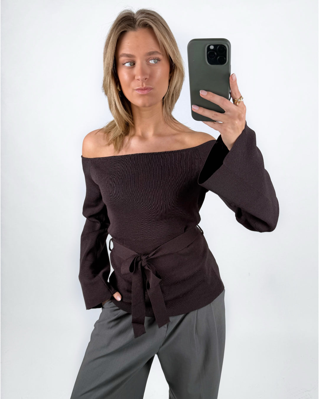 SAVANNA off shoulder strik, brun