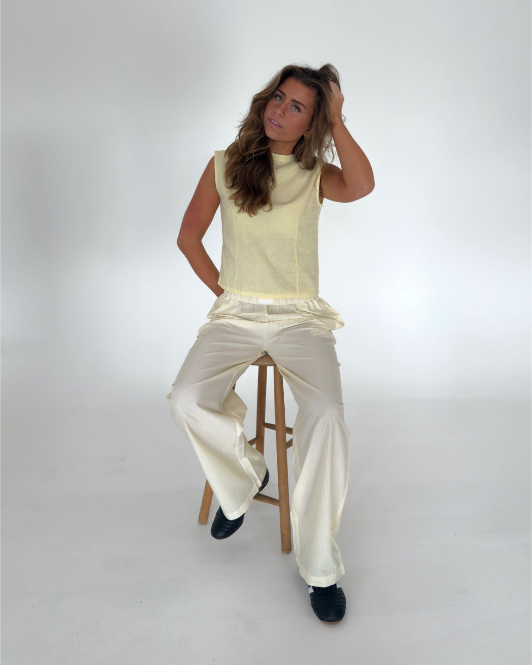 CAJSA stribede bukser, gul er lavet med brede ben, og elastik i livet, som du kan folde en gang, for at få dem mere low waisted.