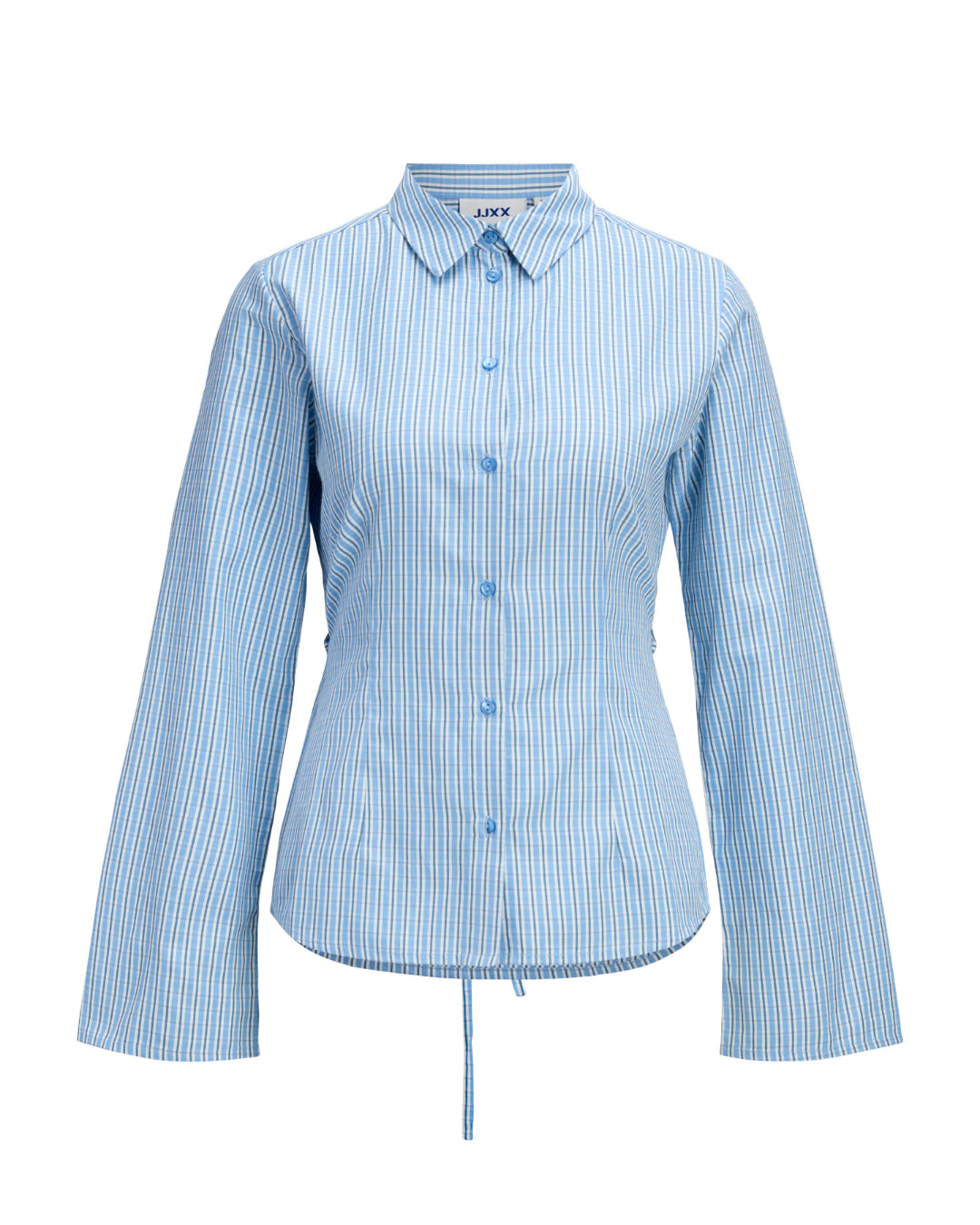 Få et frisk og moderne look med denne CARO waisted skjorte, ternet blå. Skjorten har et elegant, ternet mønster i lyseblå og hvid, som giver et klassisk, men alligevel trendy udtryk. Den figursyede pasform fremhæves af det smarte bindebånd i taljen, som giver mulighed for at justere snittet og skabe en smuk silhuet.