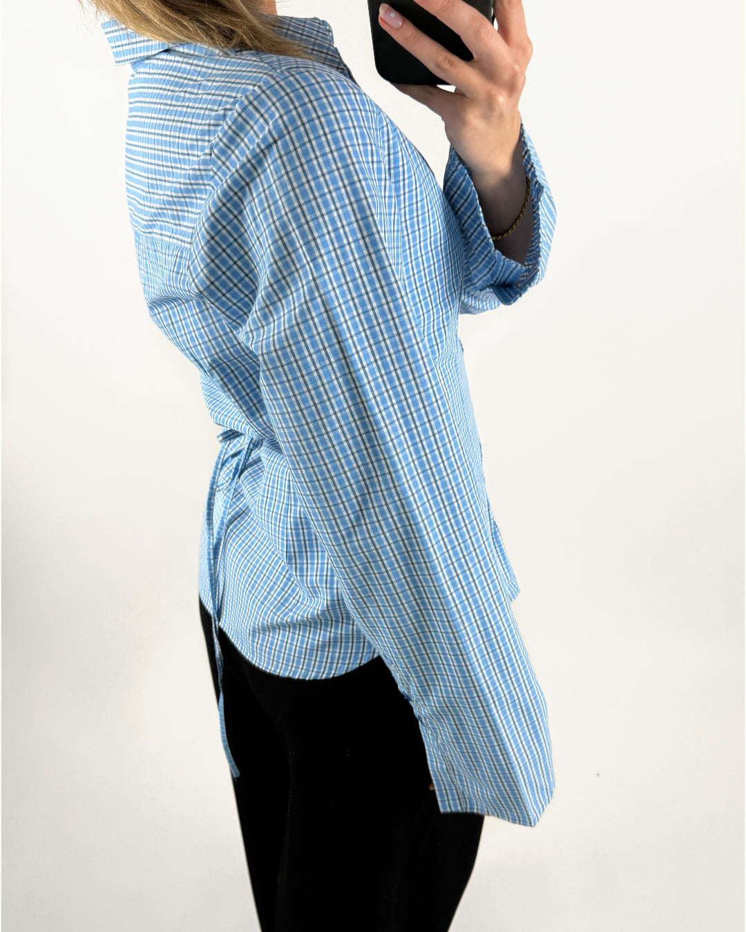 CARO waisted skjorte, ternet blå