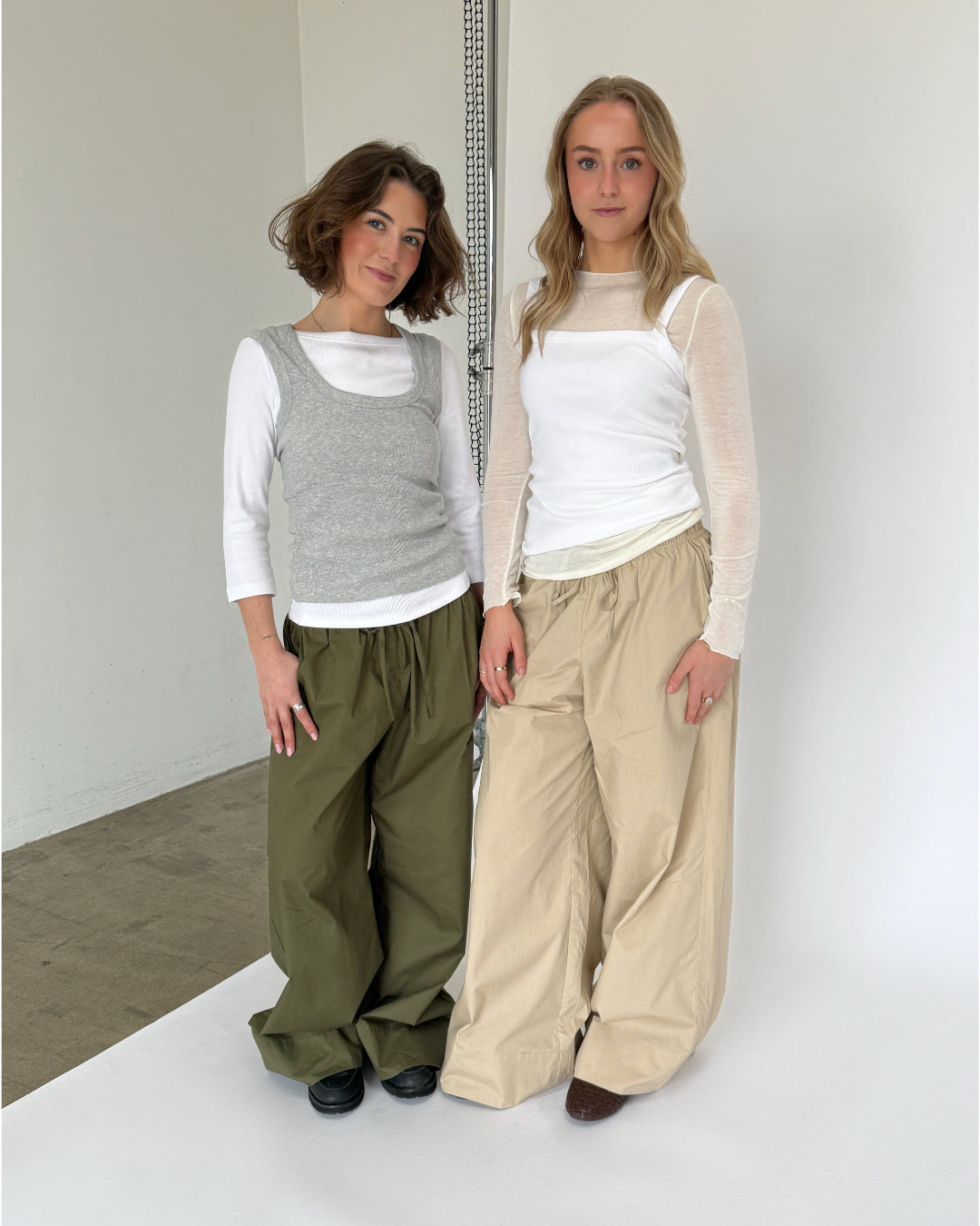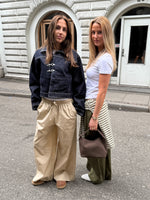 Disse DANIA wide leg bukser, beige kombinerer komfort og stil på bedste vis og er det perfekte valg til både afslappede og pæne outfits. Bukserne har en løs, bred pasform, som sikrer maksimal bevægelsesfrihed og et afslappet look. Den elastiske talje med snøre gør dem nemme at tilpasse og behagelige at have på – uanset om du bruger dem til hverdag, hjemmehygge eller ferie.