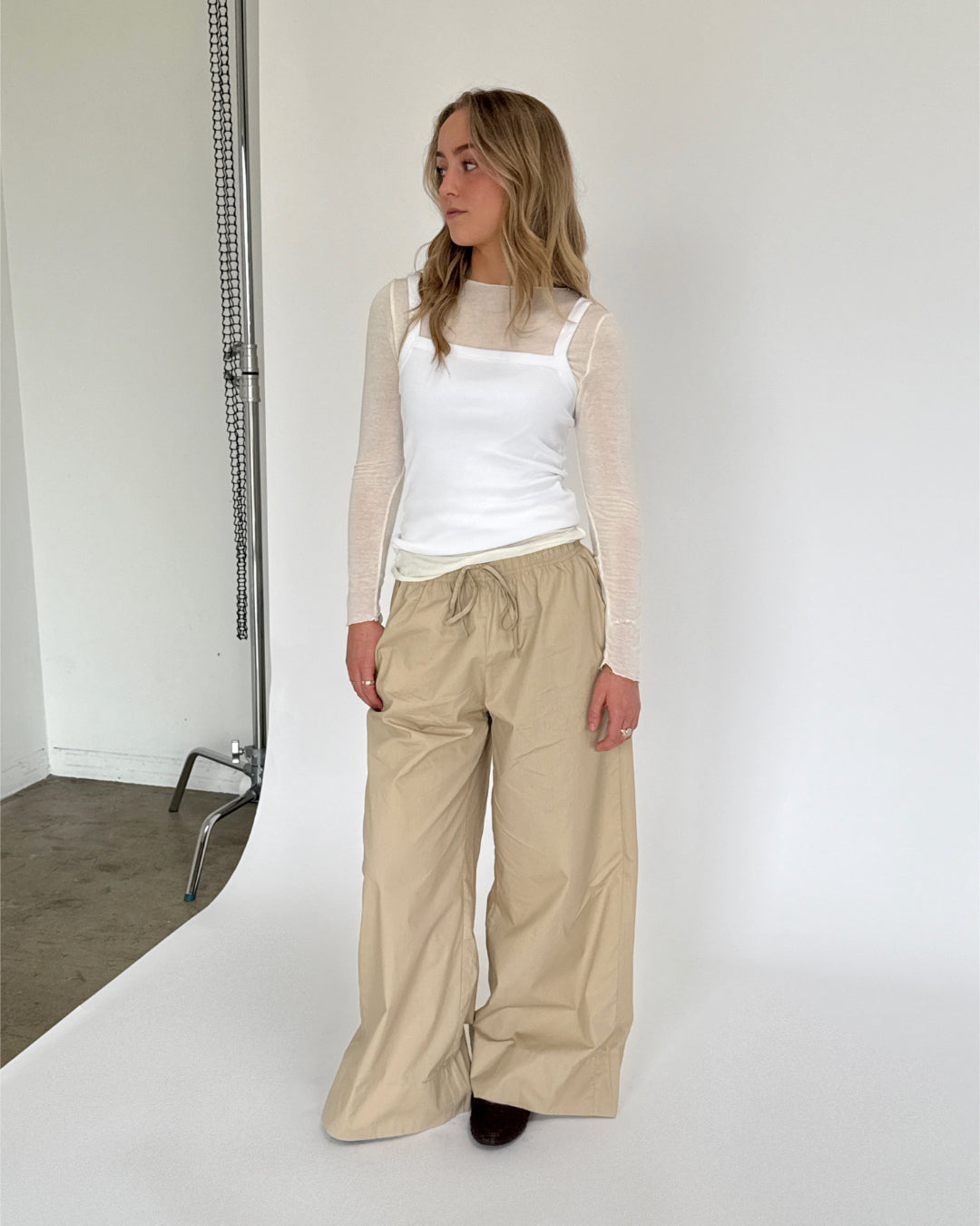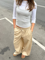 DANIA wide leg bukser, beige