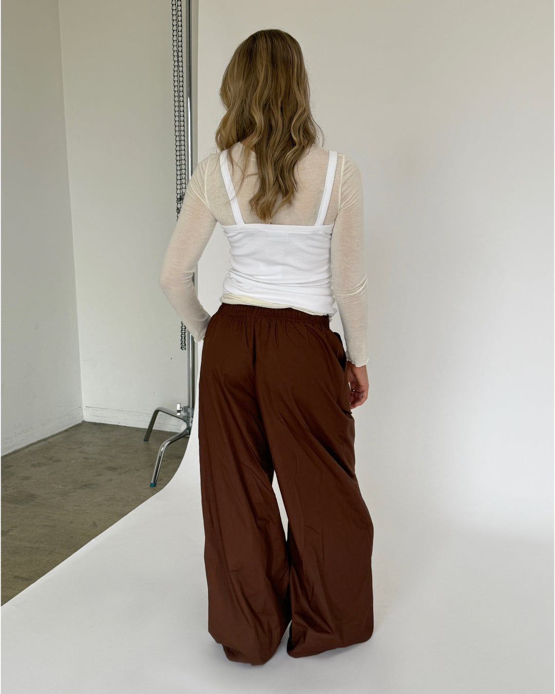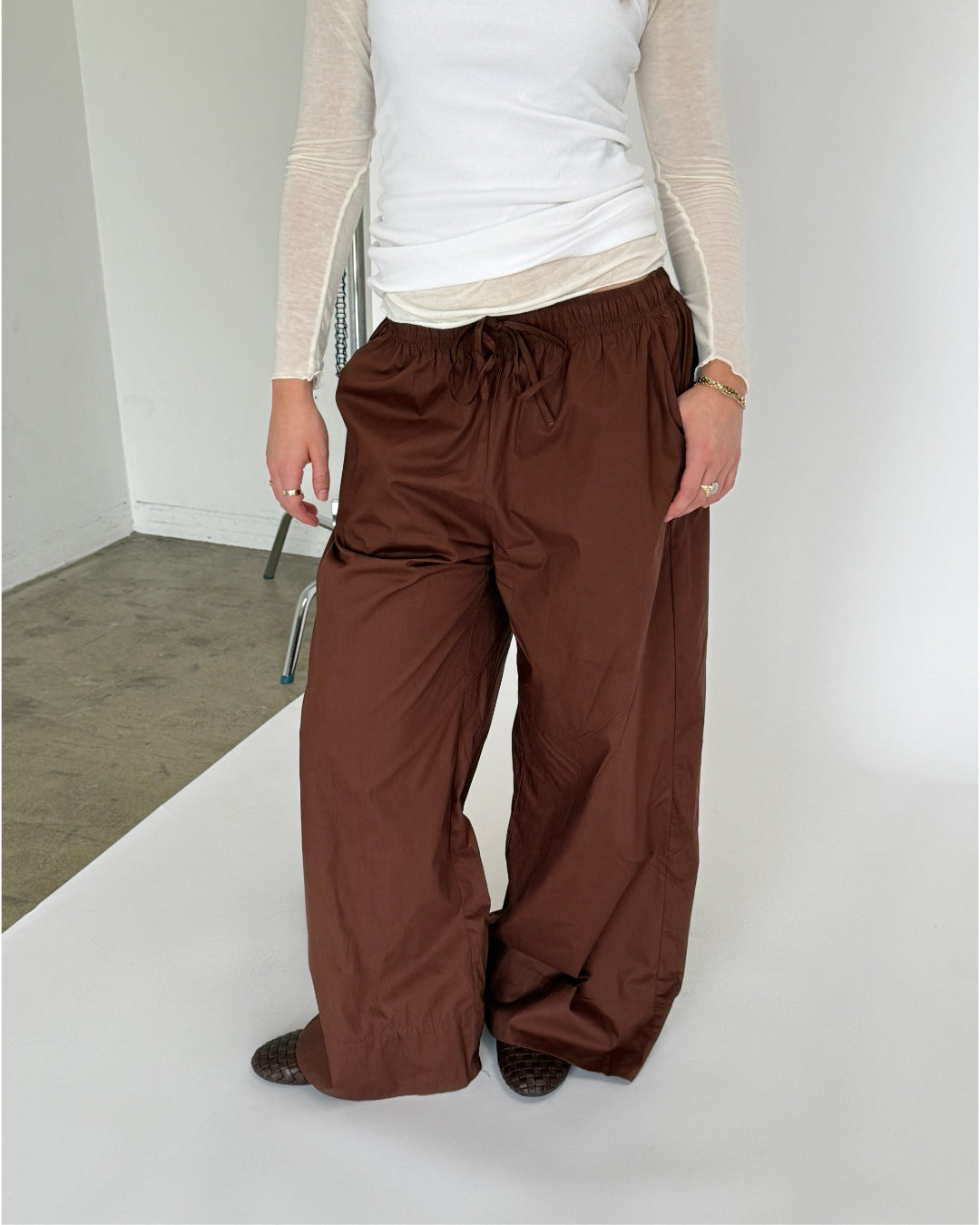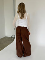 Disse DANIA wide leg bukser, brun kombinerer komfort og stil på bedste vis og er det perfekte valg til både afslappede og pæne outfits. Bukserne har en løs, bred pasform, som sikrer maksimal bevægelsesfrihed og et afslappet look. Den elastiske talje med snøre gør dem nemme at tilpasse og behagelige at have på – uanset om du bruger dem til hverdag, hjemmehygge eller ferie.