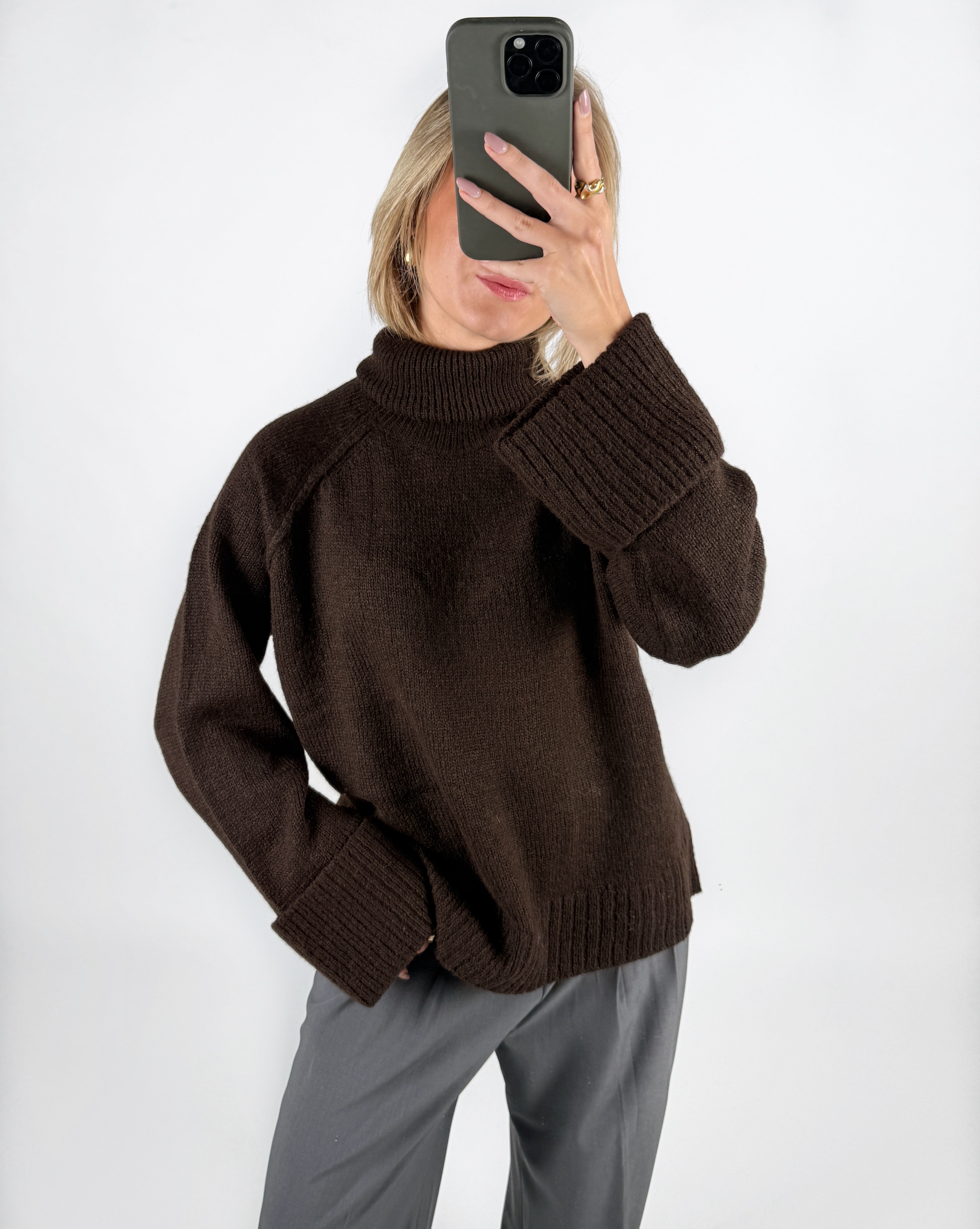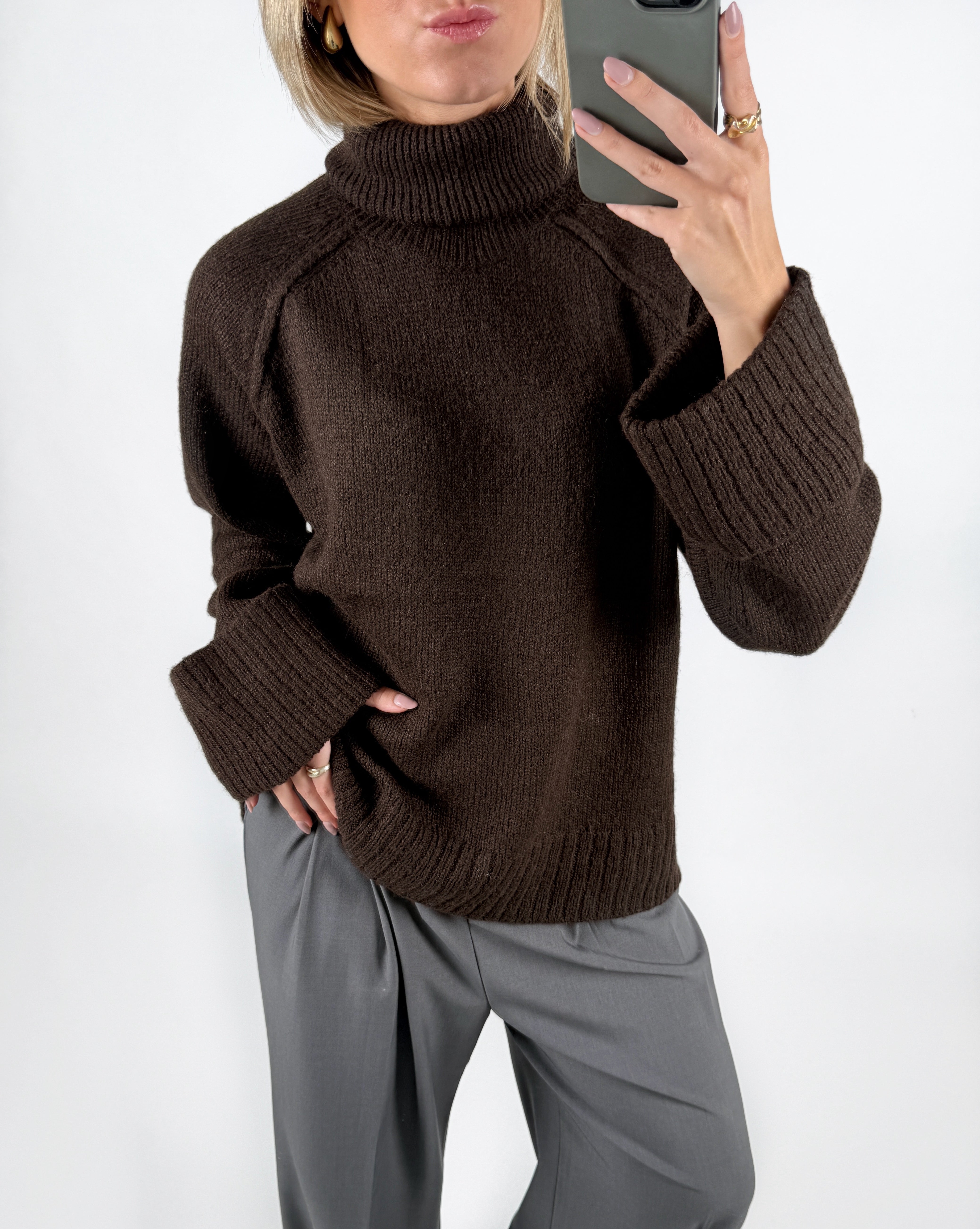 Den smukke ELLINORA rullekrave strik, brun er perfekt til de kølige dage.