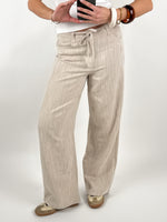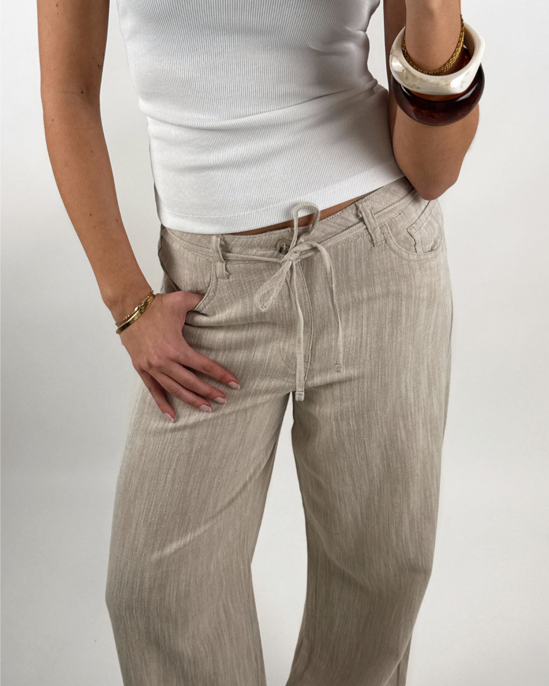 Disse lette wide leg og komfortable FIKA bukser, beige er det perfekte valg til både hverdag og afslappede dage. Bukserne er lavet i en lækker stofblanding, hvilket gør dem både åndbare, bløde og behagelige at have på – ideelle til både forår og sommer.