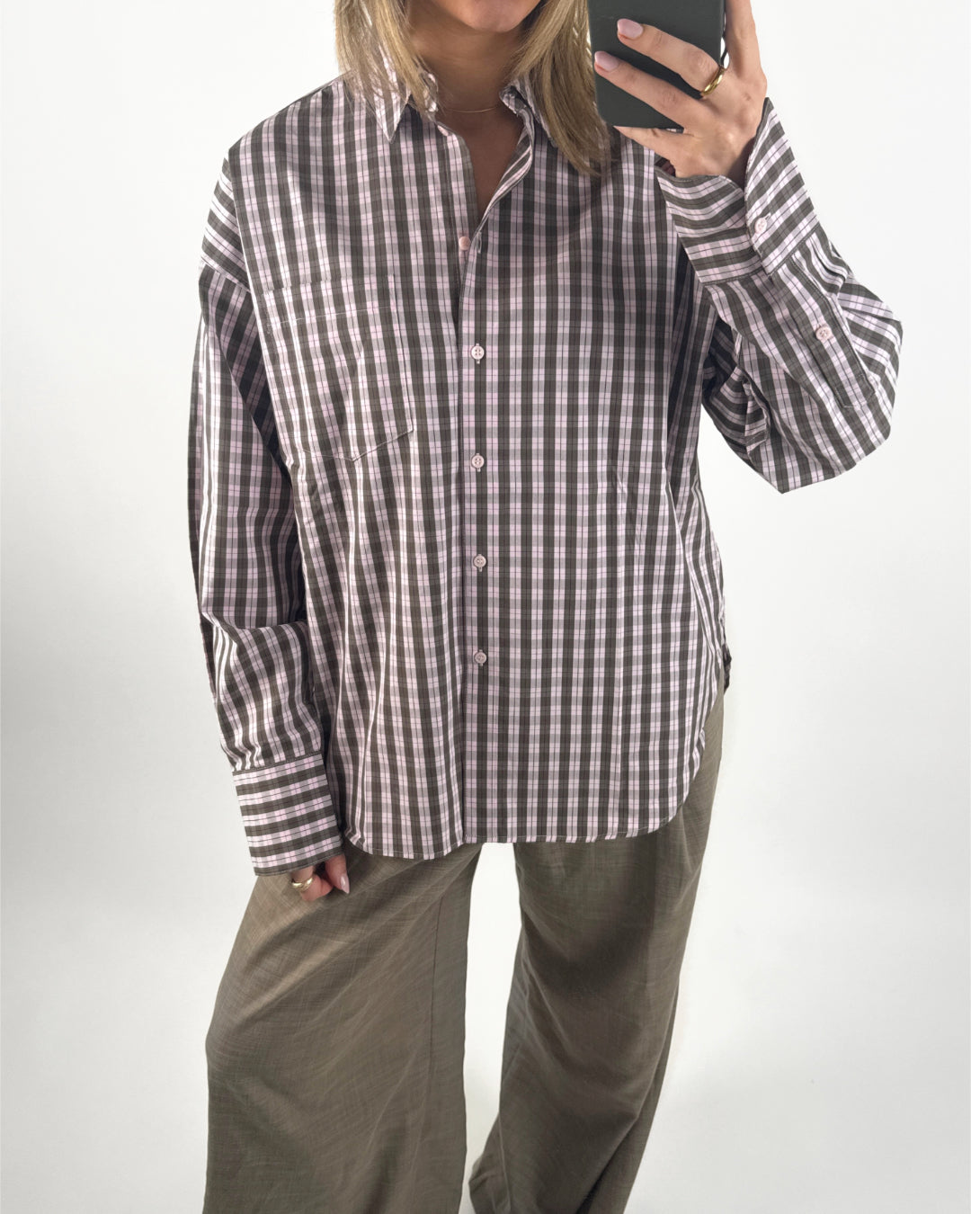 JAMIE skjorte, ternet lyserød/brun
