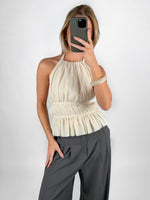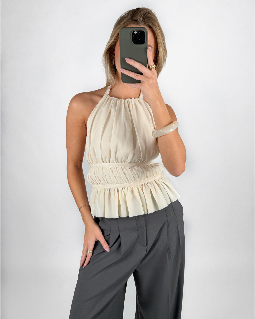 Den smukke MALANI open back top, creme er en fin top, med den smukkeste åbne ryg, som bindes bagpå.