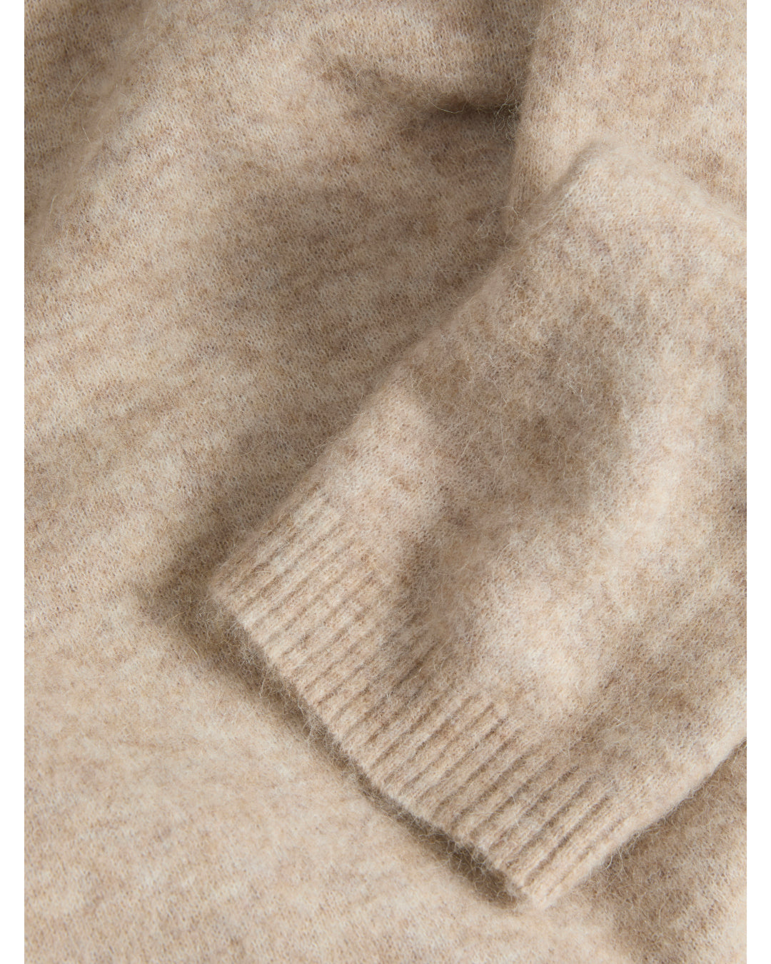 Detaljefoto af beigefarvet Matilda striktrøje. Fra BySofieSønderby