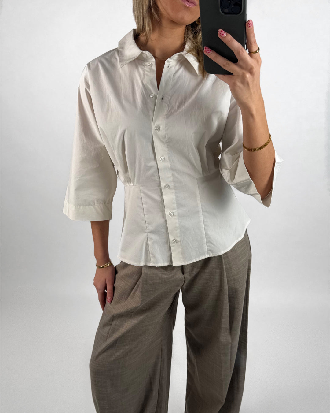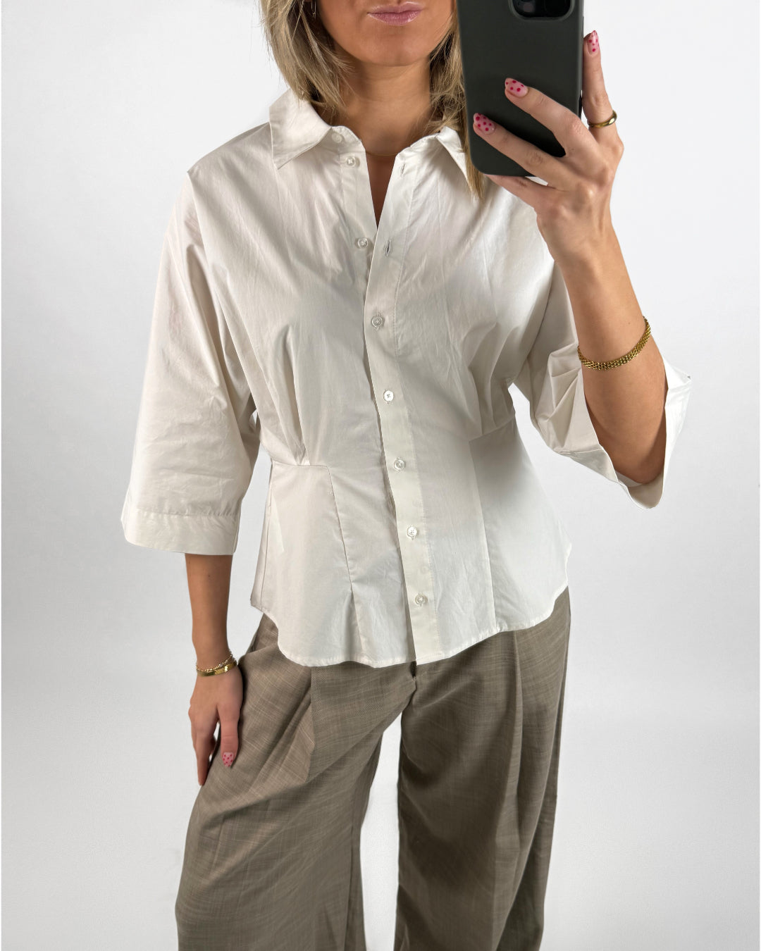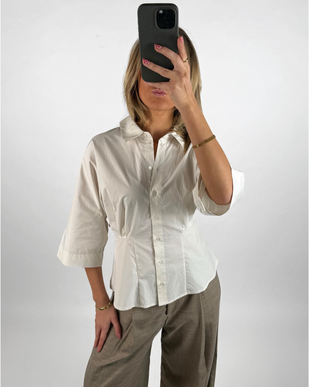 MERLE waisted skjorte, creme er den perfekte basis skjorte, med et lille twist til garderoben. Du kan se alle vores skjorter HER.