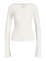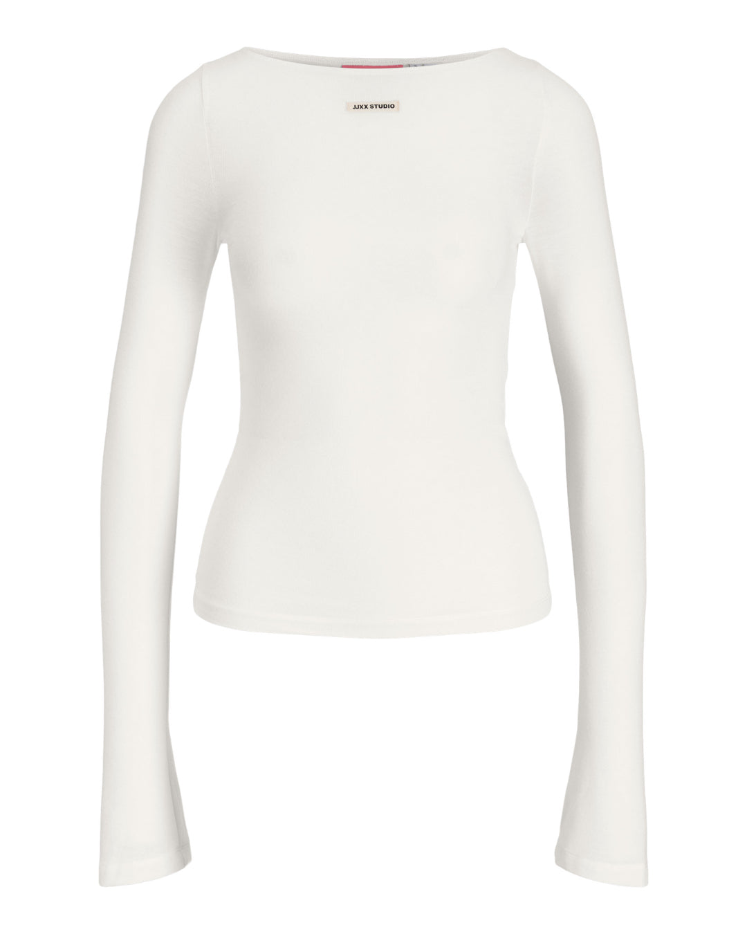 – Langærmet bluse med bådformet halsudskæring.