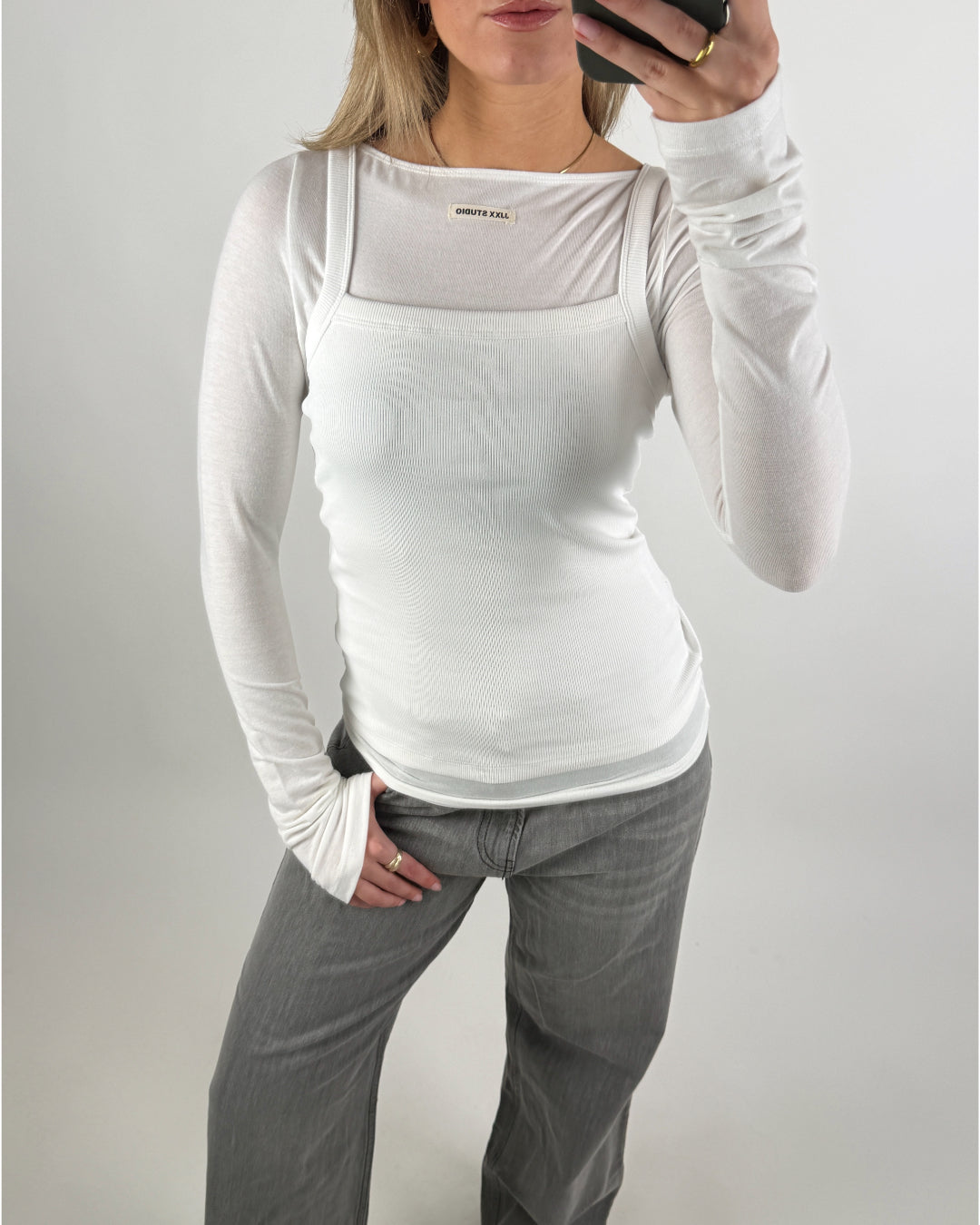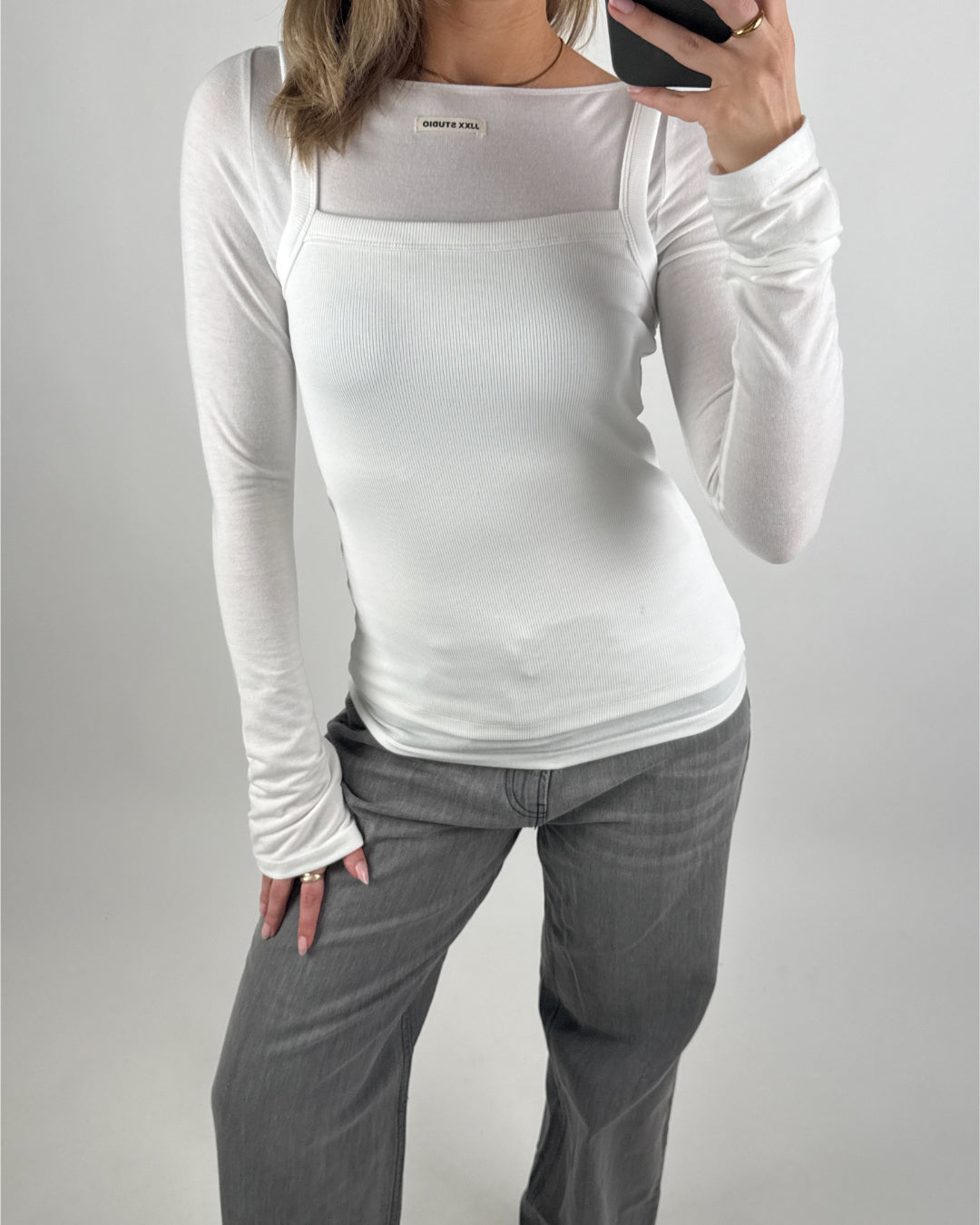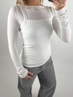 Modellen har en rund, let bådformet hals og smalle, figursyede linjer, der giver et feminint og tidløst udtryk. Perfekt til både hverdag og pænere anledninger – brug den alene med et par jeans, under en blazer eller som det inderste lag til lag-på-lag styling.