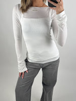 Elegant og enkel MINA boatneck bluse, hvid med lange ærmer, perfekt som basis i enhver garderobe. Blusen er fremstillet i en komfortabel stretchkvalitet, hvilket giver både blødhed, fleksibilitet og en flot pasform.