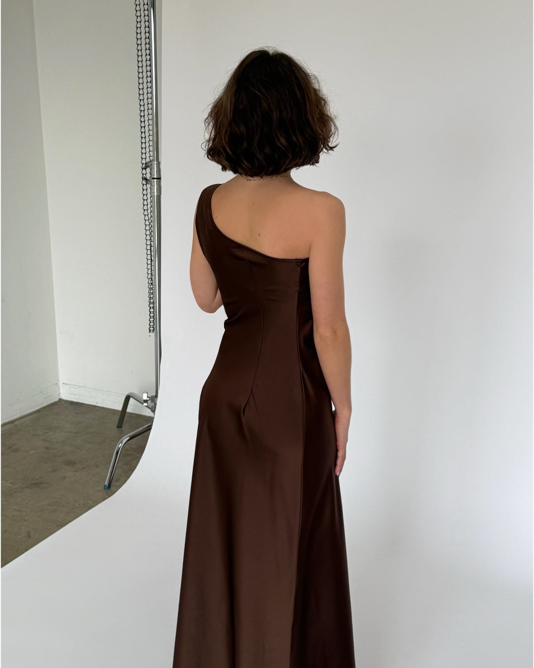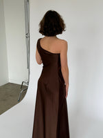 NAT one shoulder kjole, brun