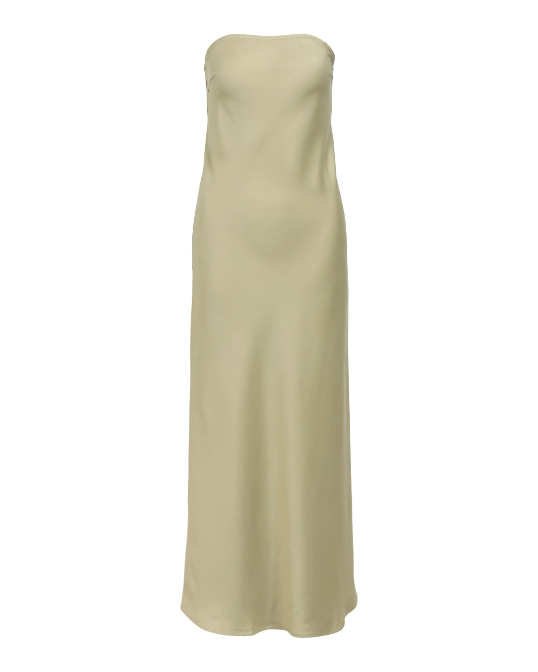 Gør dig klar til sommerens mange begivenheder med denne klassiske bandeau NAT stropløs kjole, grøn. Kjolen har en elegant, enkel og tidløs figur med lige overkant, hvilket fremhæver skuldrene og giver et flot udtryk. Den figurskårne, let taljerede pasform sikrer en smuk og feminin silhuet, mens det bløde og lette materiale gør kjolen yderst behagelig at have på.