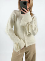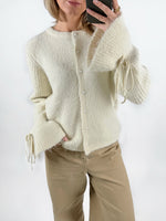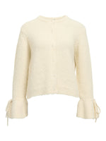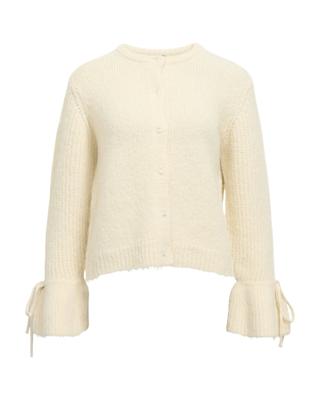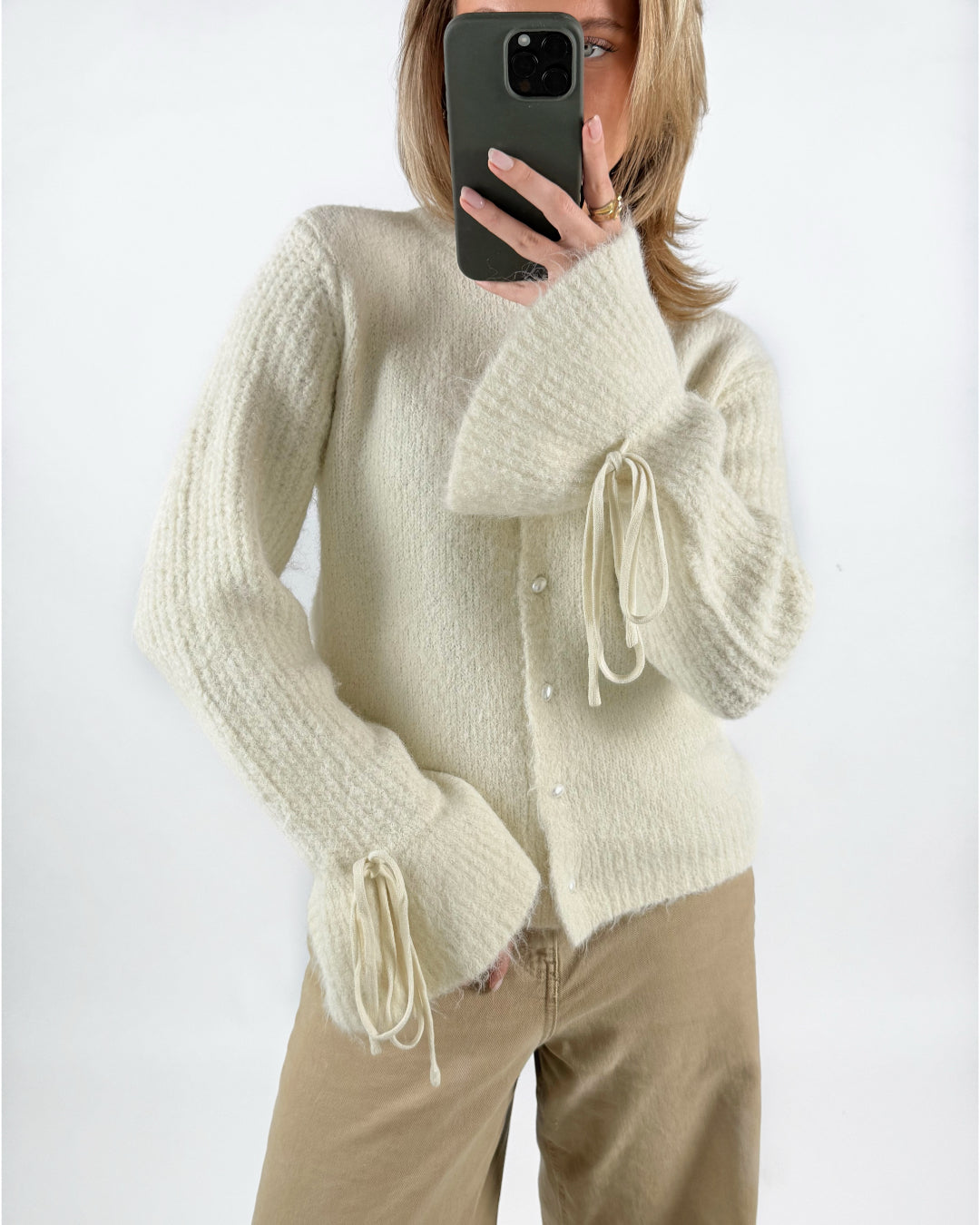 Den smukke SALIKA strikket cardigan, creme er en virkelig elegant cardigan med knaplukning og smukke detaljerede ærmer.